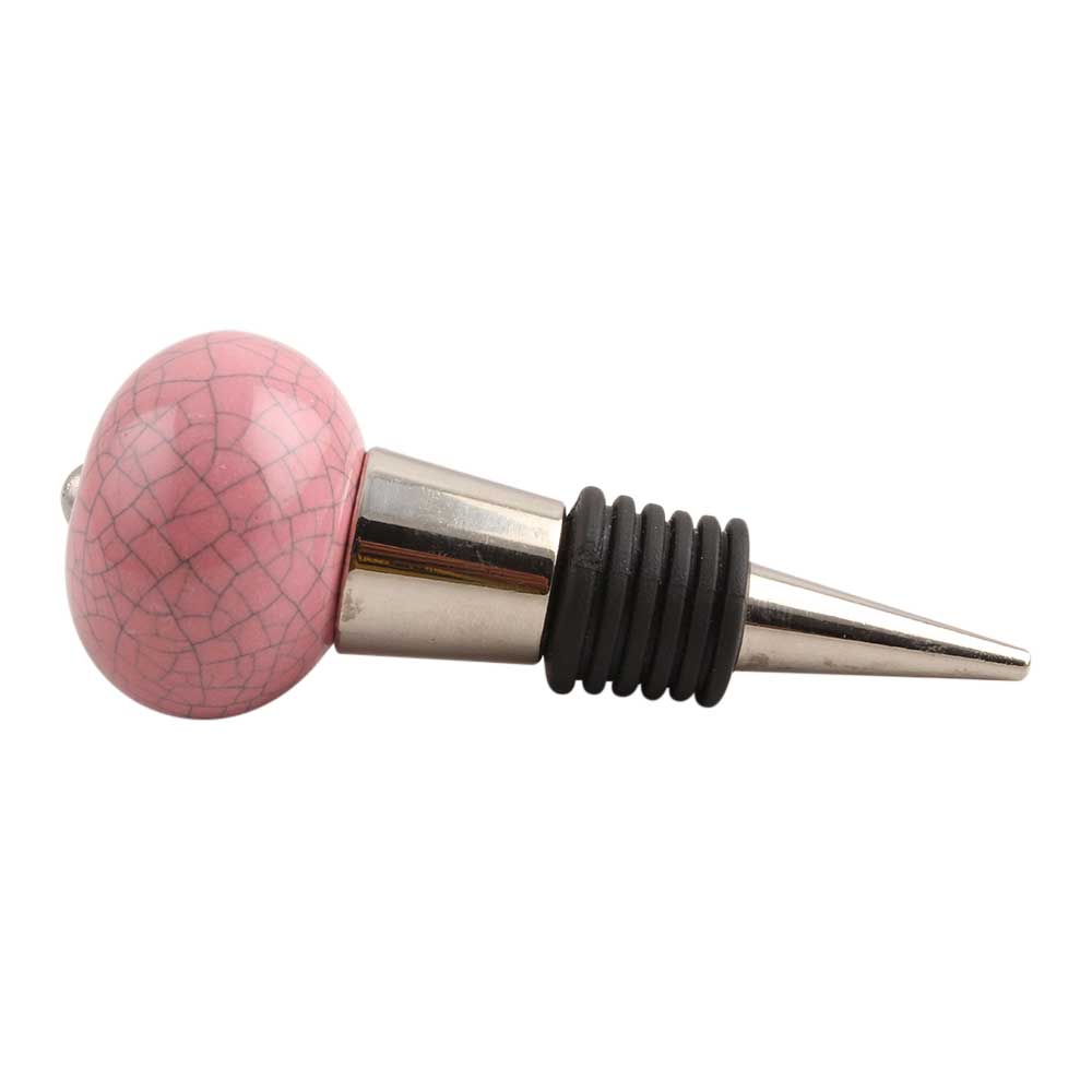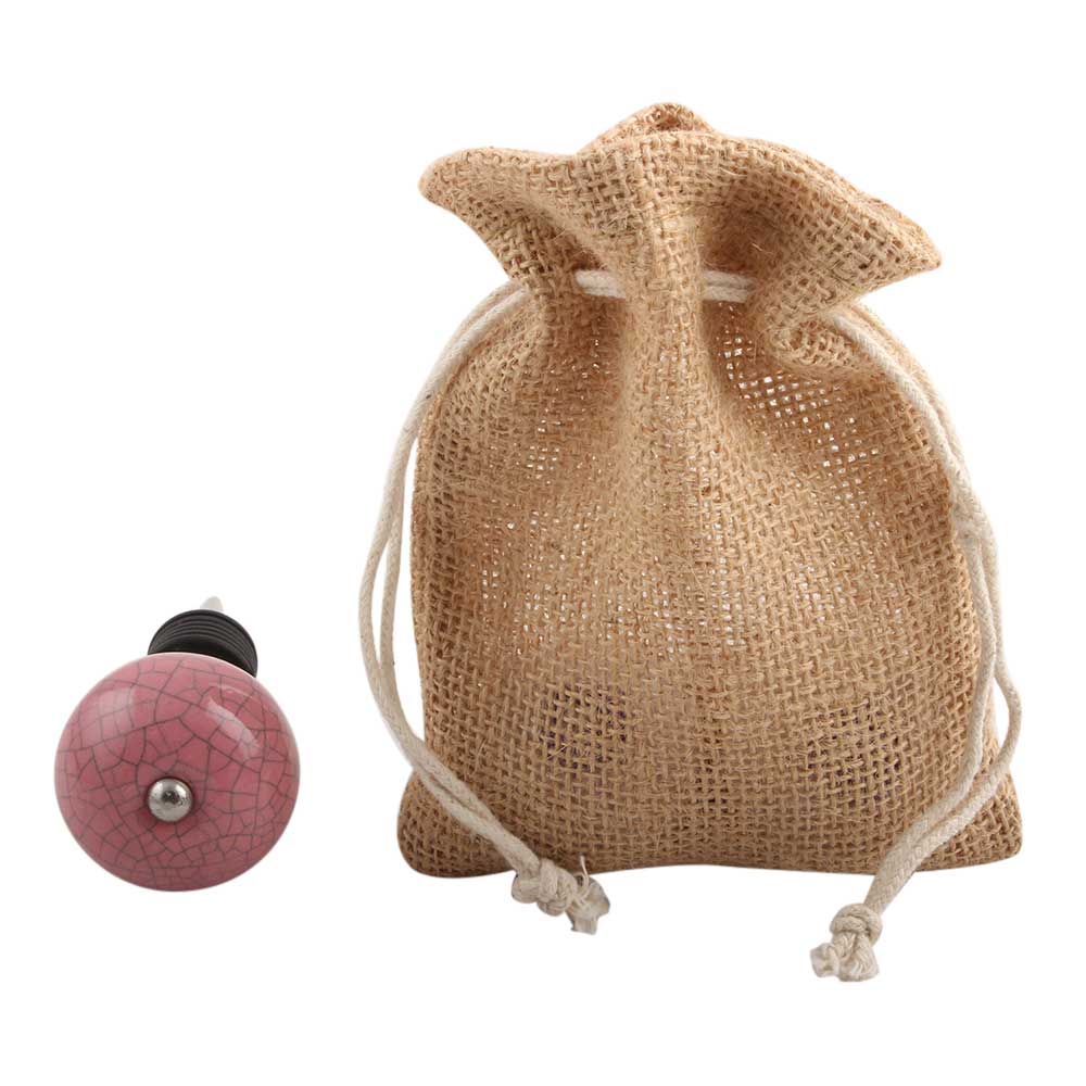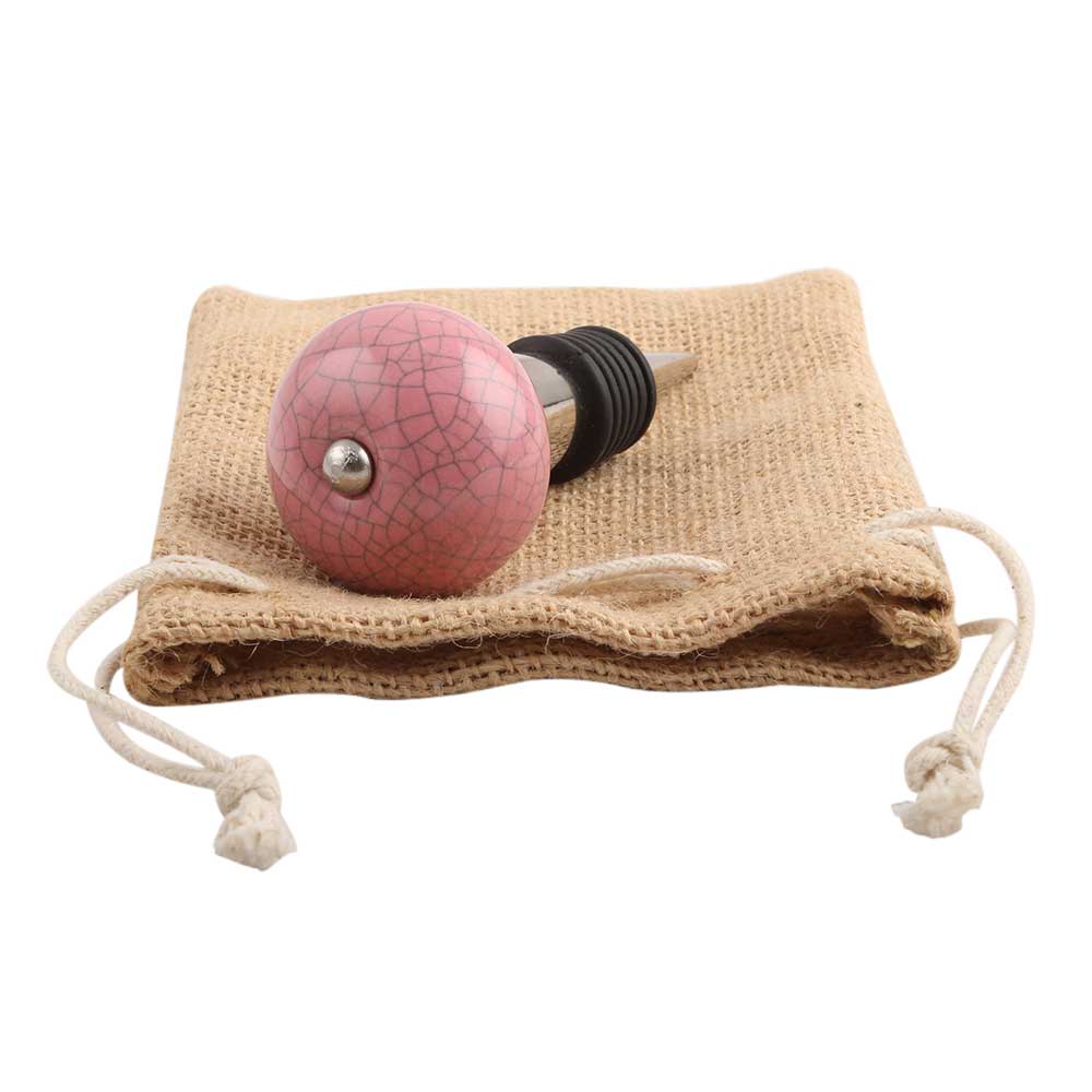 Pink Crackle Ceramic Wine Stopper.zinc alloy wine bottle stopper with attractive Jute Bag Packaging.