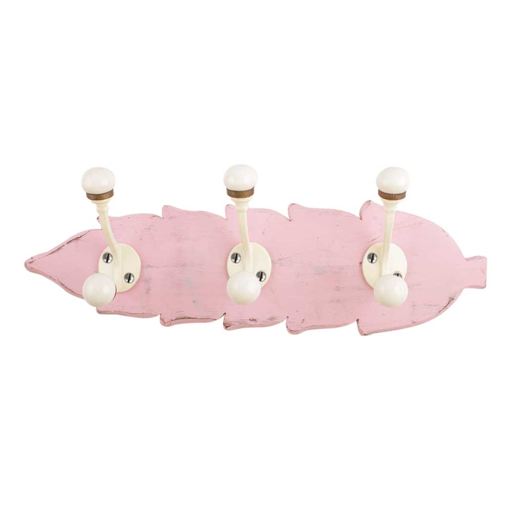 Pink Cream Double Loop Ceramic Iron Wooden Hooks. A Perfect Complement to the Soft Tone of the Wood are these White Traditional Hat & Coat Hook Made of Genuine Porcelain and Brass. It can be use to Hang Jewellery, Leashes, Towels, Scarves, Light Weight Sweaters, Caps Etc.