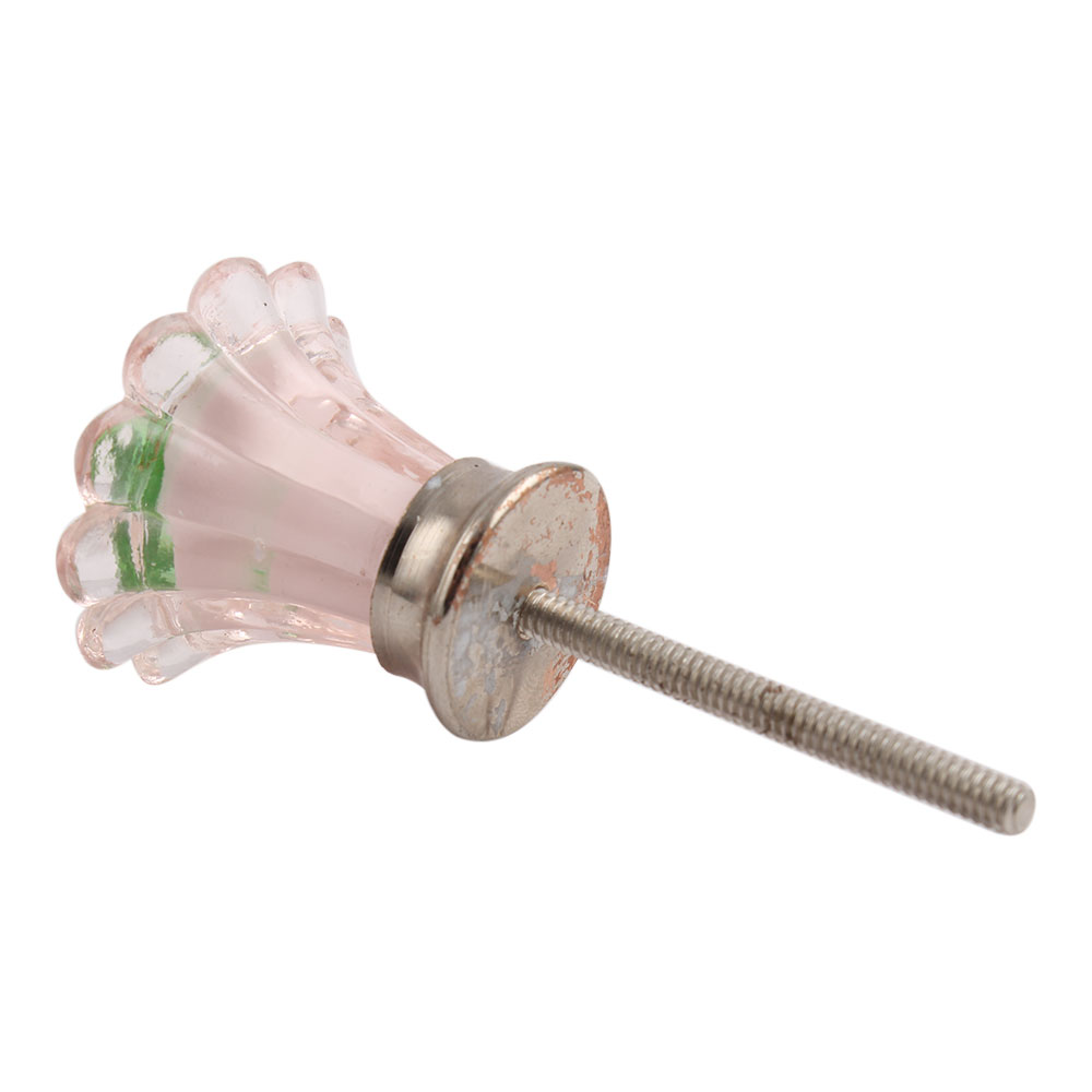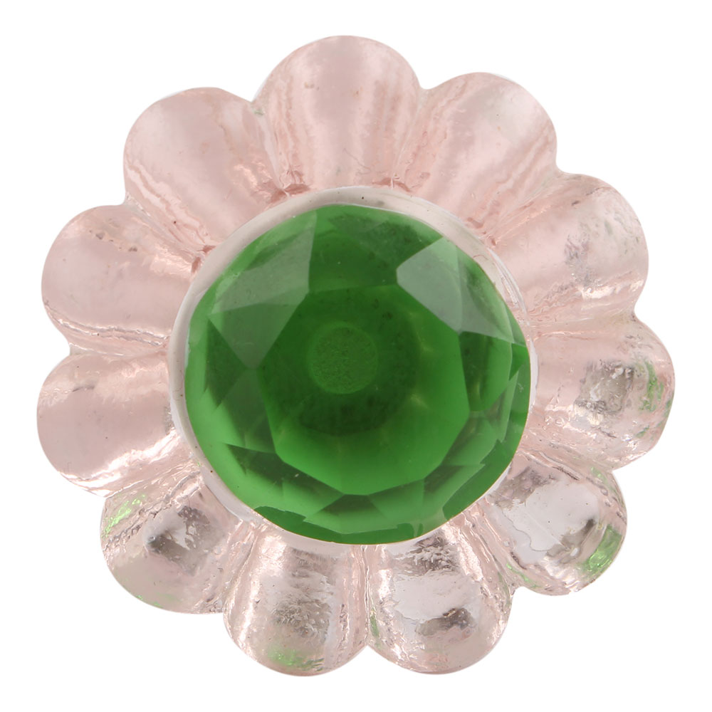 Pink Daisy Green Crystal Glass Drawer Knob.Ideal for kitchen cabinets, kitchen drawers, dining room, bed room, chest drawers, dressing tables, almirahs, etc.