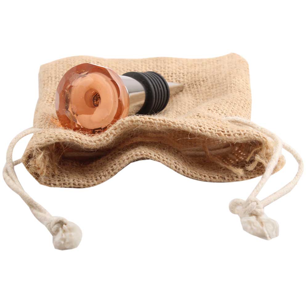 Pink Diamond Glass Wine Stopper.zinc alloy wine bottle stopper with attractive Jute Bag Packaging.