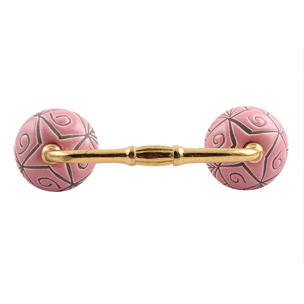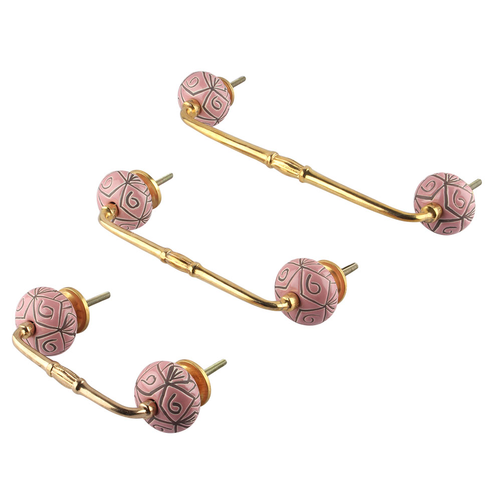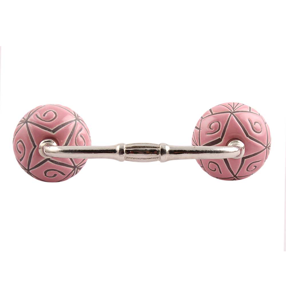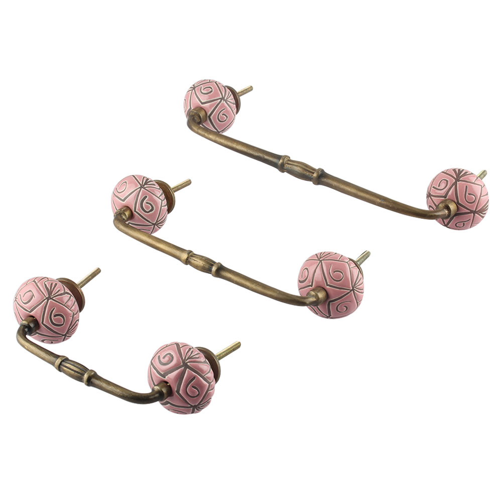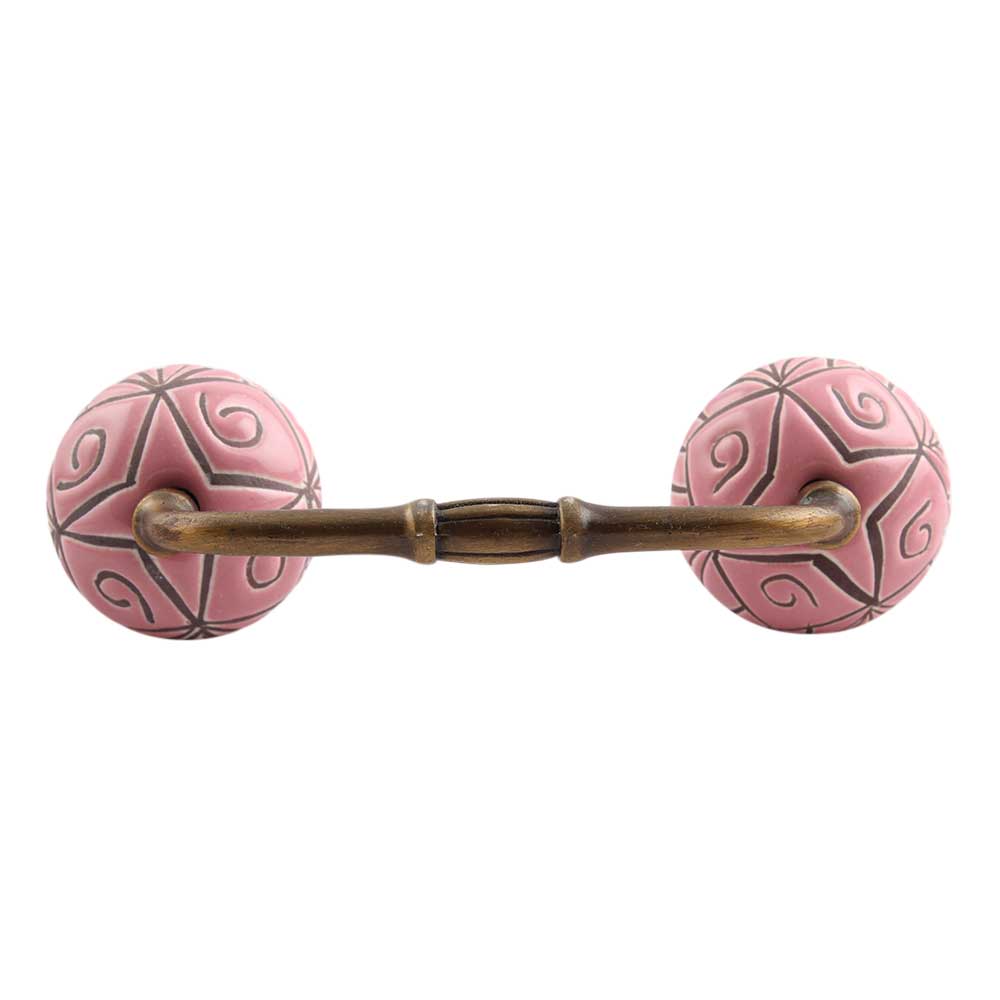 Pink Etched Ceramic Floral Bridge Handle. Ideal for Drawer, Dresser, Cabinet, Wardrobe, Cupboard and Almirah.