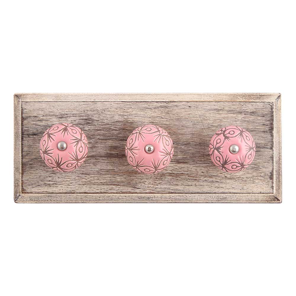 Pink Etched Ceramic Wooden Hook. A Perfect Complement to the Soft Tone of the Wood are these White Traditional Hat & Coat Hook Made of Genuine Porcelain and Brass. It can be use to Hang Jewellery, Leashes, Towels, Scarves, Light Weight Sweaters, Caps Etc.