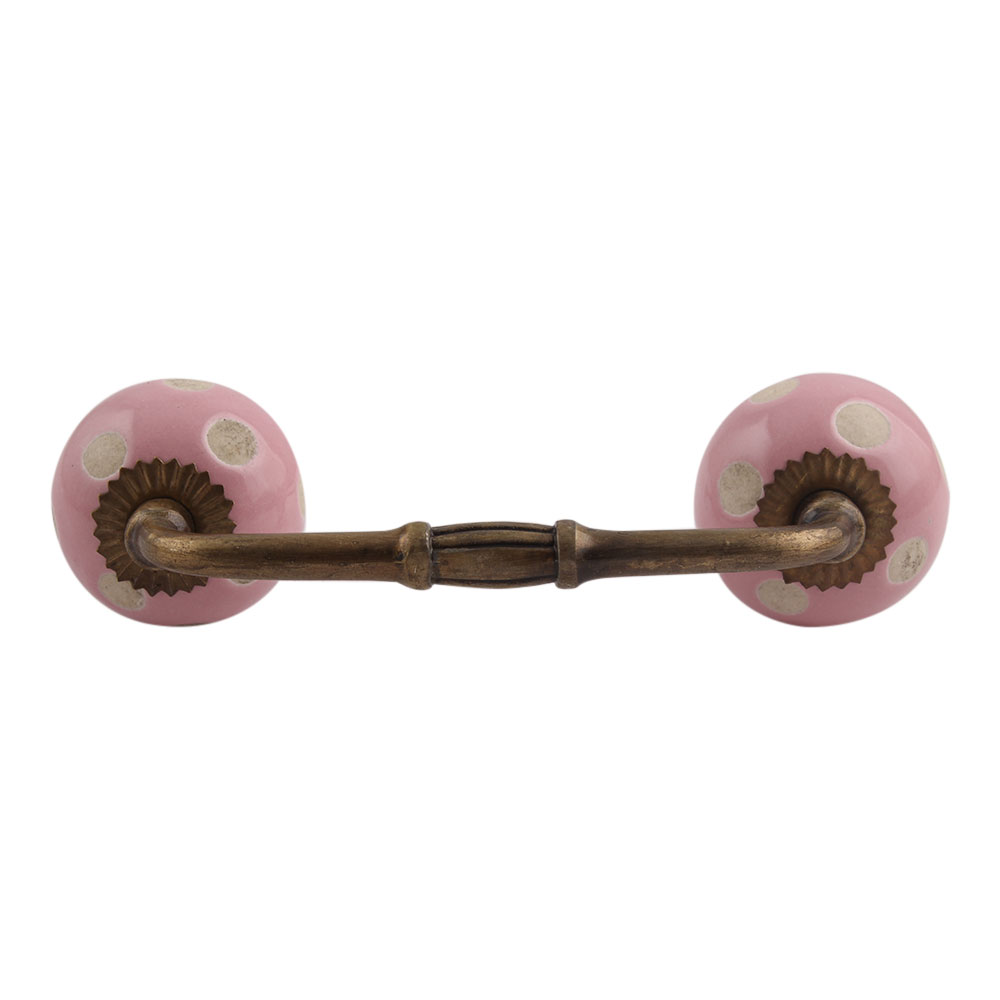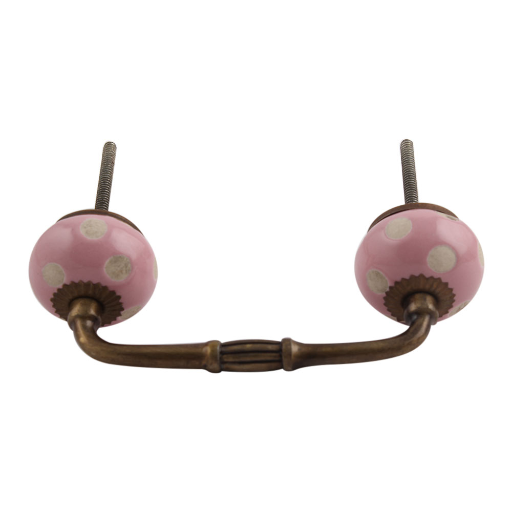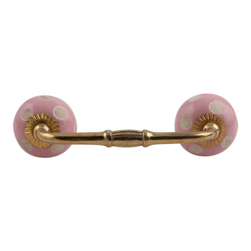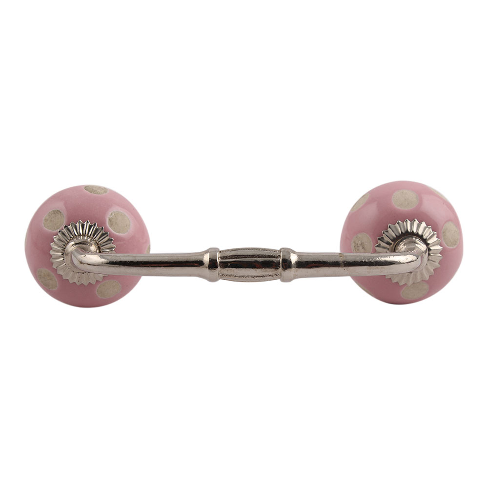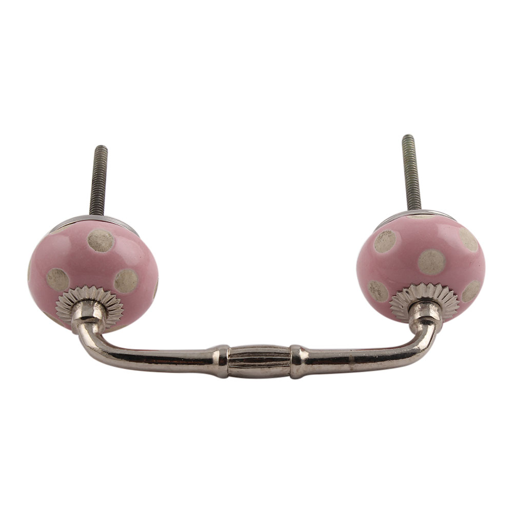 Pink Etched Dot Ceramic Bridge Handle. Ideal for Drawer, Dresser, Cabinet, Wardrobe, Cupboard and Almirah.
