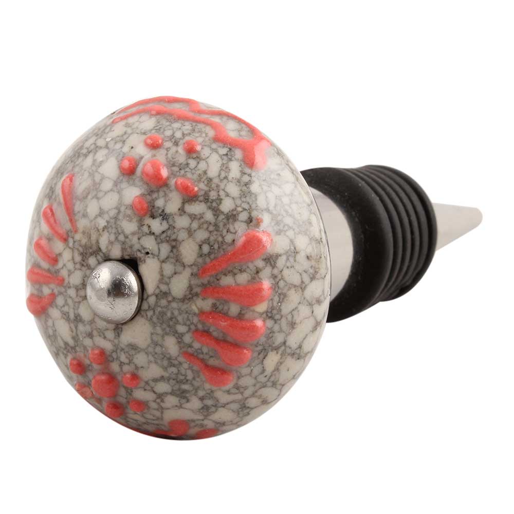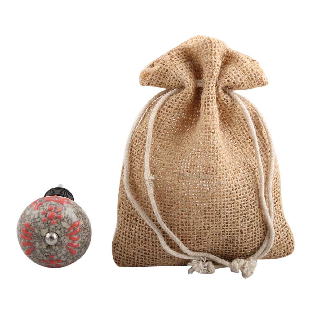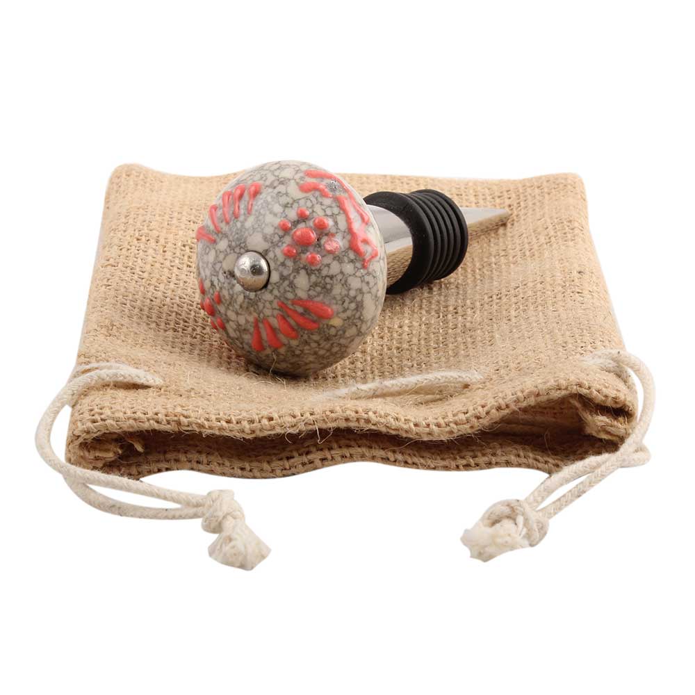 Pink Floral Crackle Ceramic Wine Stopper. Zinc Alloy Wine Bottle Stopper with Attractive Jute Bag Packaging.