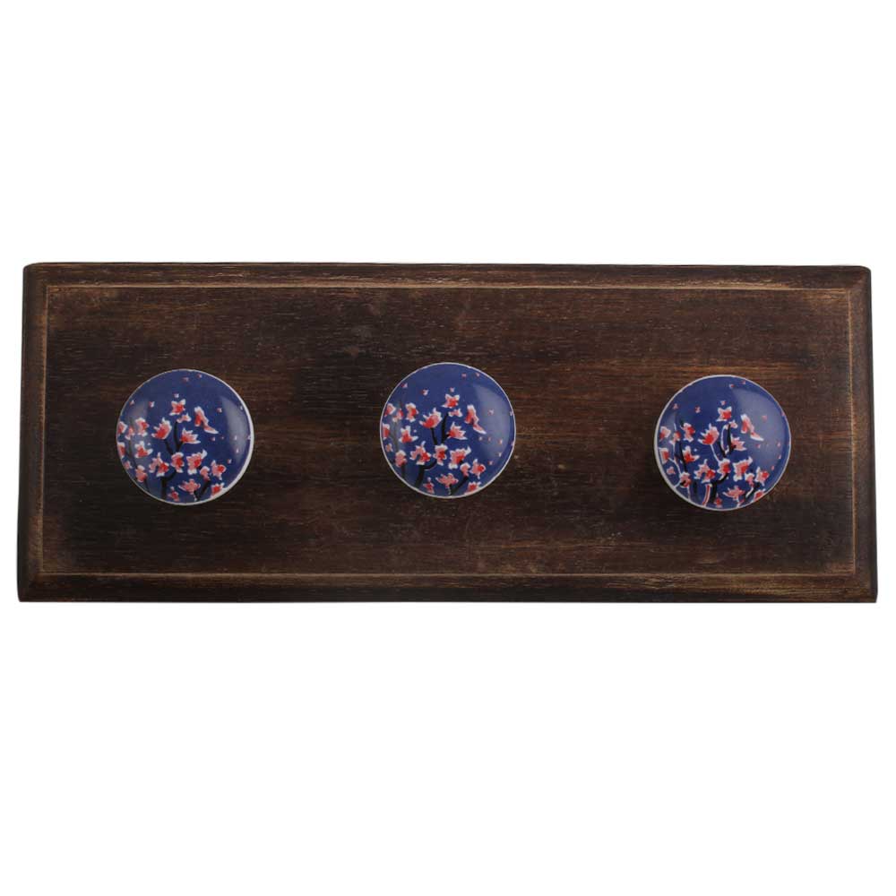 Pink Flower Ceramic Flat Wooden Hook. A Perfect Complement to the Soft Tone of the Wood are these White Traditional Hat & Coat Hook Made of Genuine Porcelain and Brass. It can be use to Hang Jewellery, Leashes, Towels, Scarves, Light Weight Sweaters, Caps Etc.
