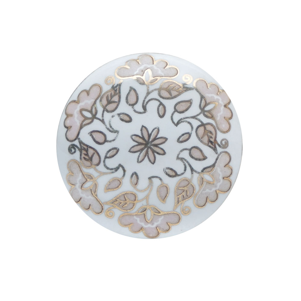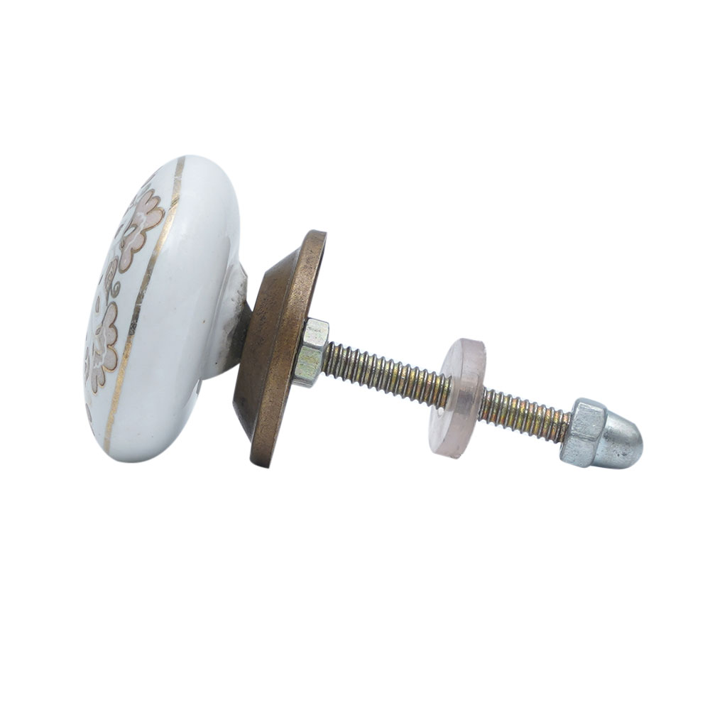 A round ceramic knob which is a beautiful and elegant piece of hardware that will add a touch of glamour to any furniture. Featuring a white finish with floral engravings in golden colour and pink fillings, it is handmade by skilled artisans from India. The knob is perfect for use as a cabinet ceramic knob, ceramic knobs for cabinets, or ceramic knobs and pulls. The pink fillings of this knob give it a unique and charming look that is perfect for those who want to add a pop of colour to their furniture. The intricate floral engravings add to its overall elegance and sophistication. This knob is perfect for those who are looking for a unique and stylish addition to their furniture. It can be gifted to your loved ones on special occasions like housewarming or other festive or special events. With this exquisite ceramic knob, you can elevate the look of your furniture and add a touch of glamour to any room.