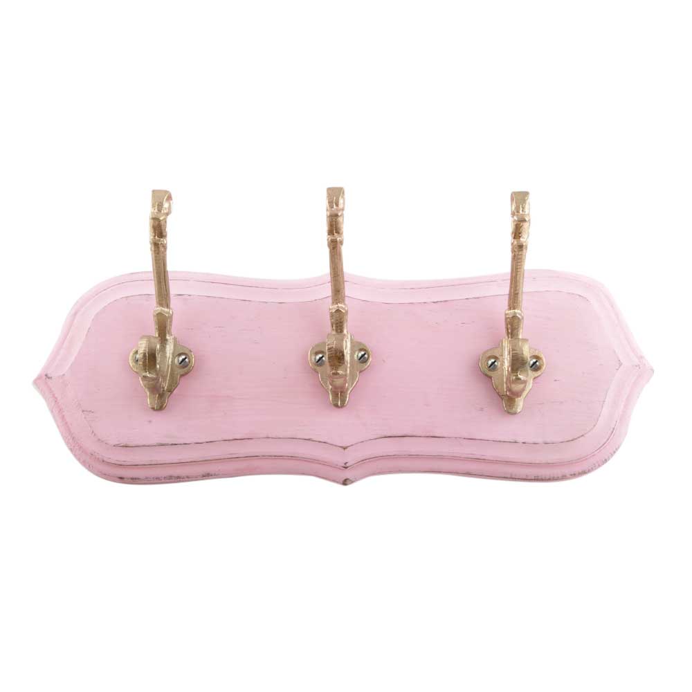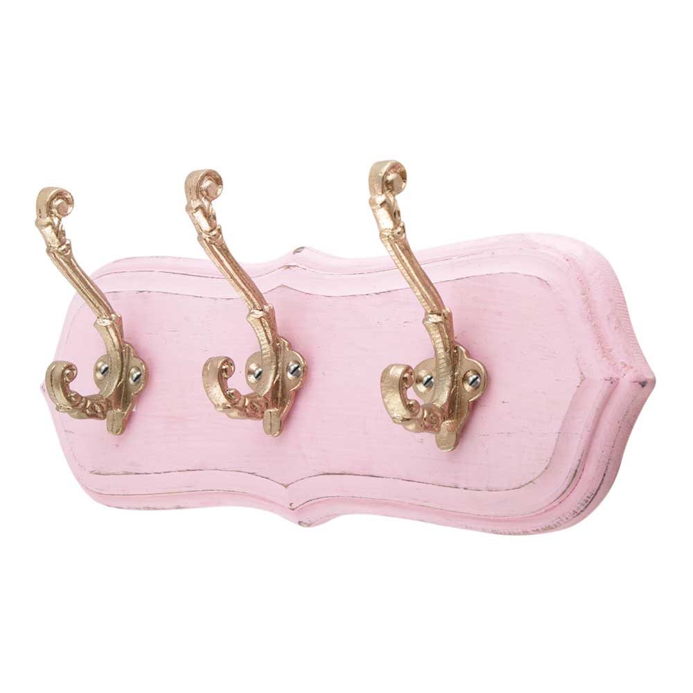 Pink And Golden Small Wall Wooden Iron Hooks. A Perfect Complement to the Soft Tone of the Wood are these White Traditional Hat & Coat Hook Made of Genuine Porcelain and Brass. It can be use to Hang Jewellery, Leashes, Towels, Scarves, Light Weight Sweaters, Caps Etc.