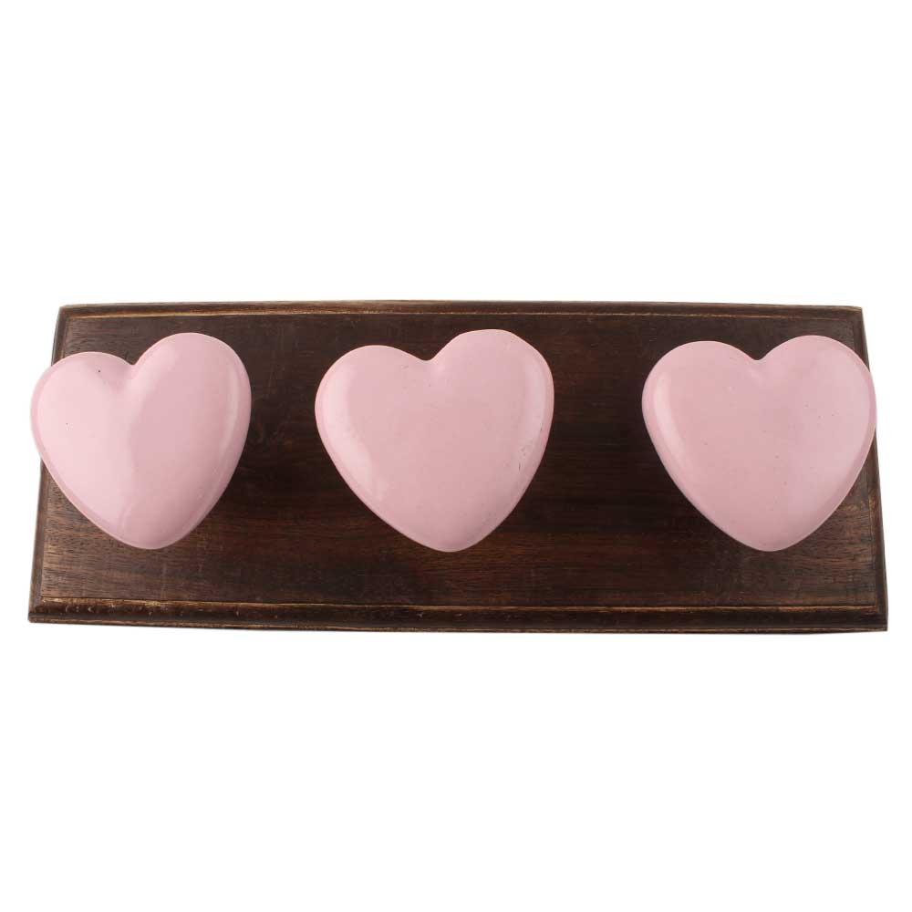 Pink Heart Ceramic Wooden Hook. A Perfect Complement to the Soft Tone of the Wood are these White Traditional Hat and Coat Hook Made of Genuine Porcelain and Brass. It can be used to Hang Jewelry, Leashes, Towels, Scarves, Light Weight Sweaters, Caps etc.
