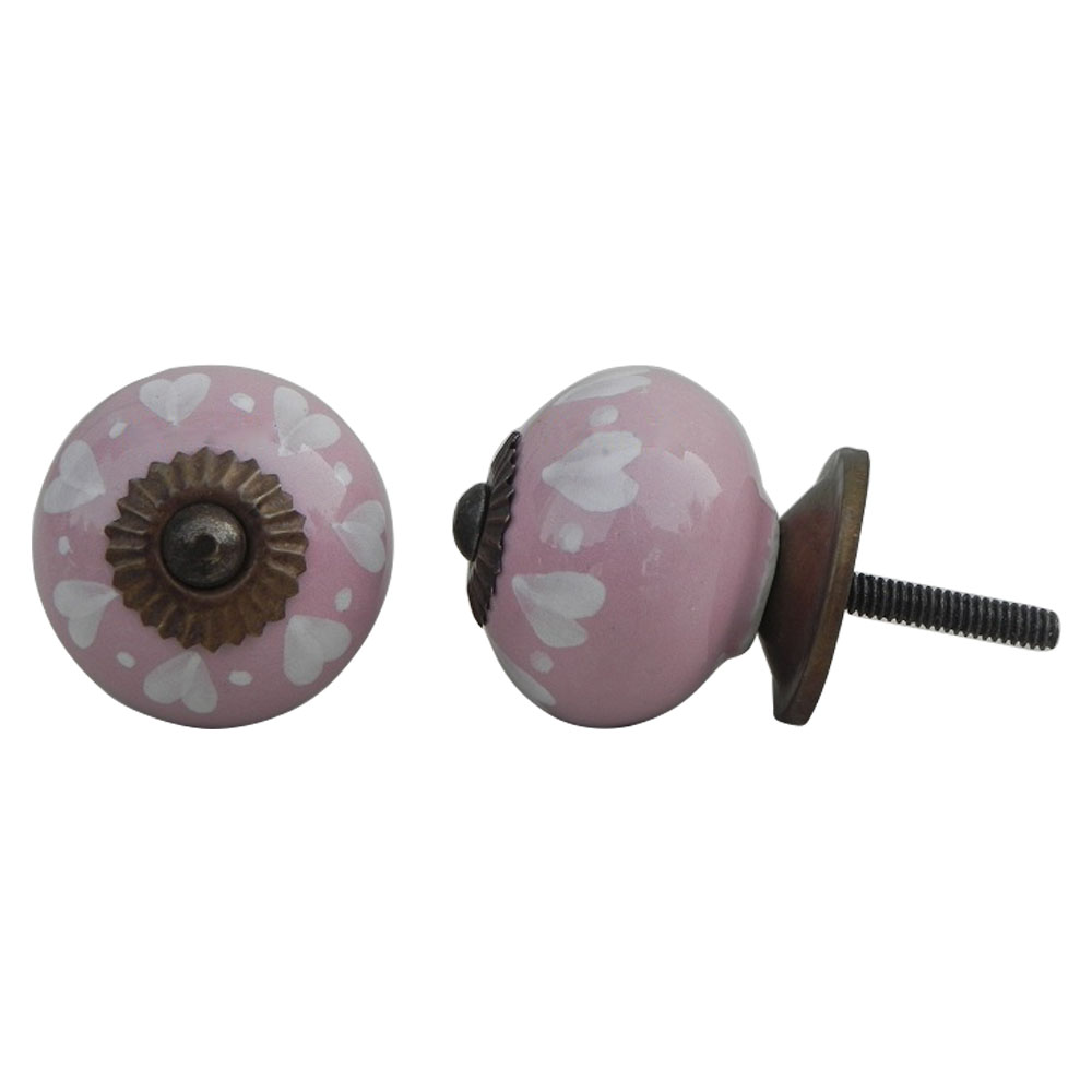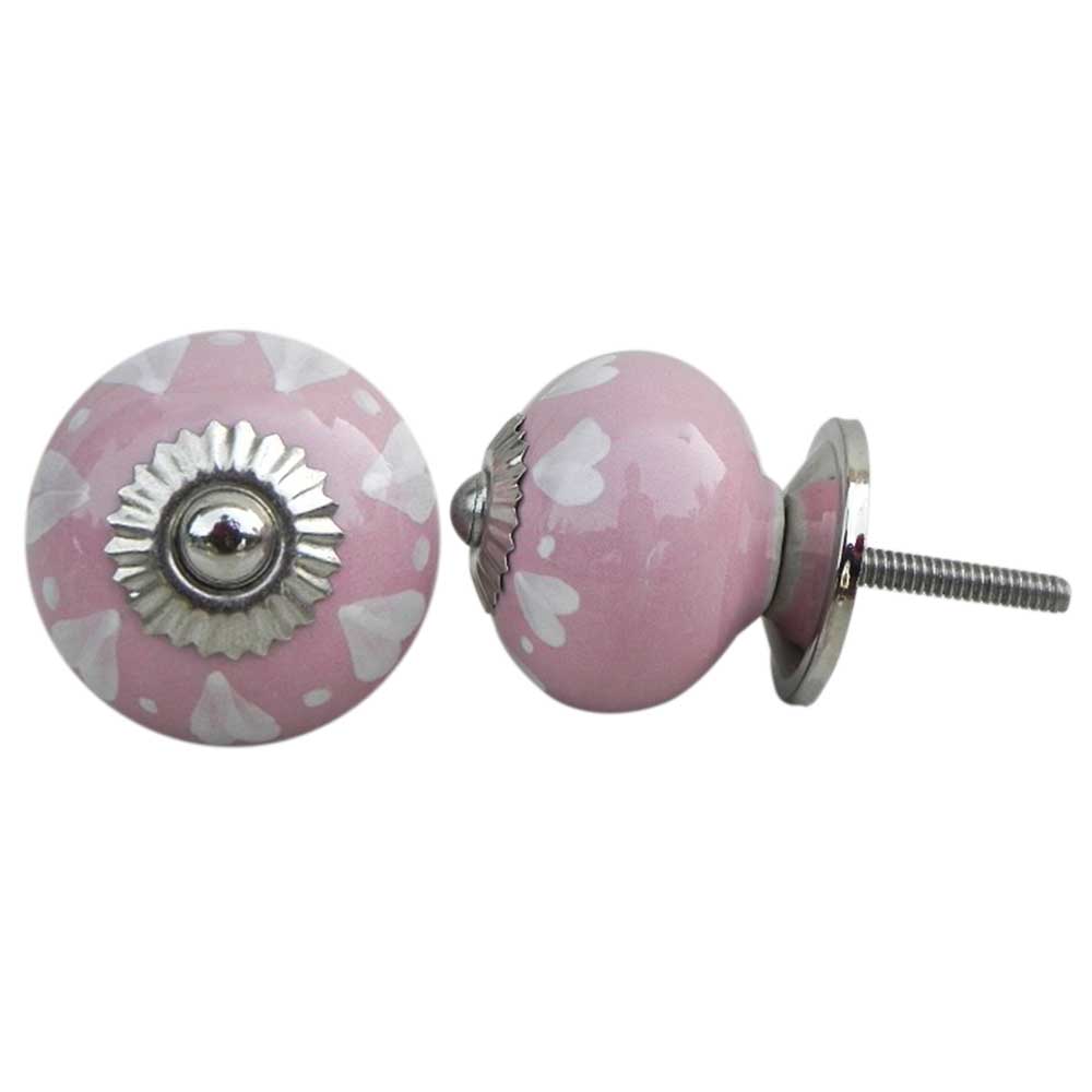 Pink Heart Dot Ceramic Knob. Ideal for kitchen cabinets, kitchen drawers, dining room, bed room, chest drawers, dressing tables, almirah