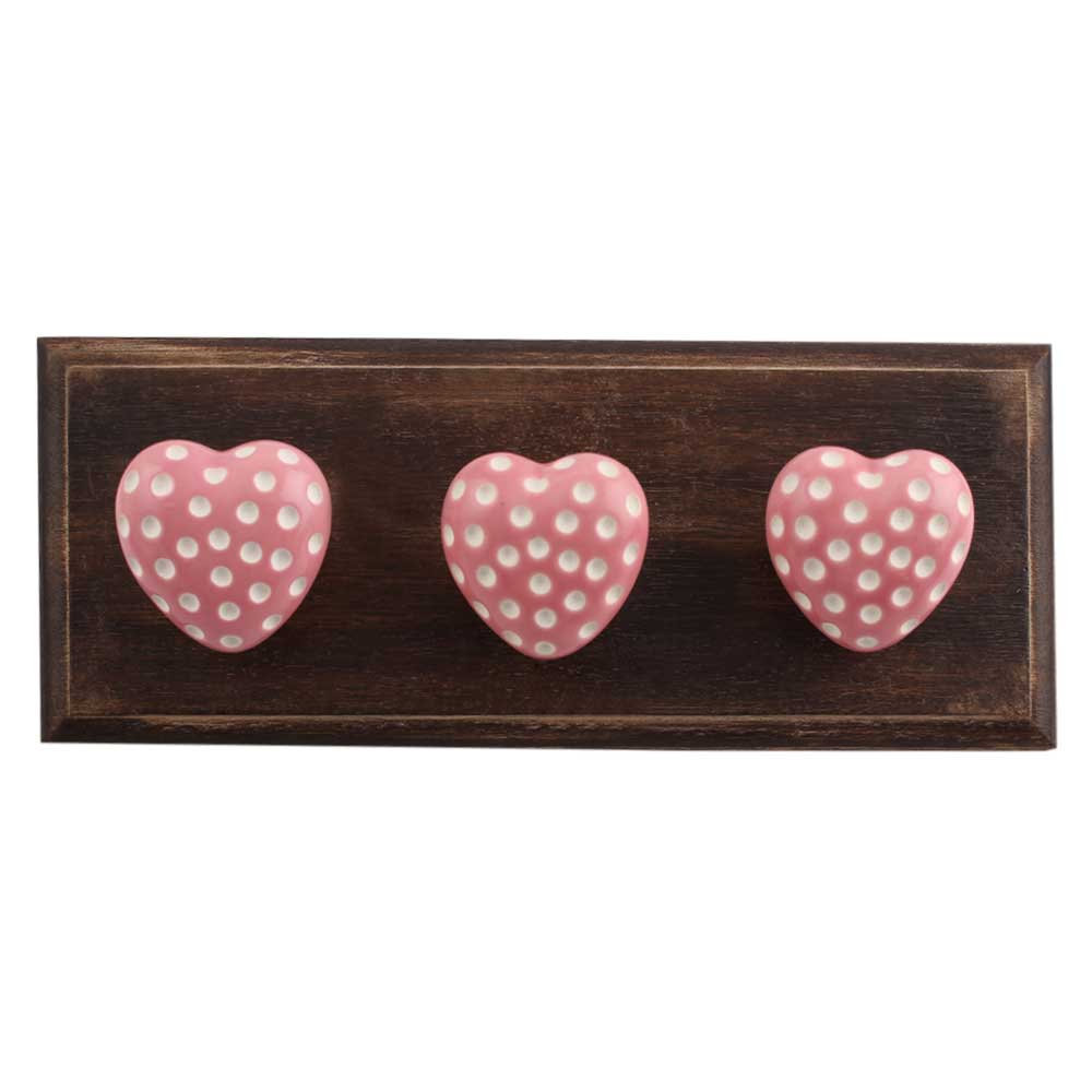 Pink Heart Etched Ceramic Wooden Hook. A Perfect Complement to the Soft Tone of the Wood are these White Traditional Hat &Amp; Coat Hook Made of Genuine Porcelain and Brass. It can be use to Hang Jewellery, Leashes, Towels, Scarves, Light Weight Sweaters, Caps Etc.