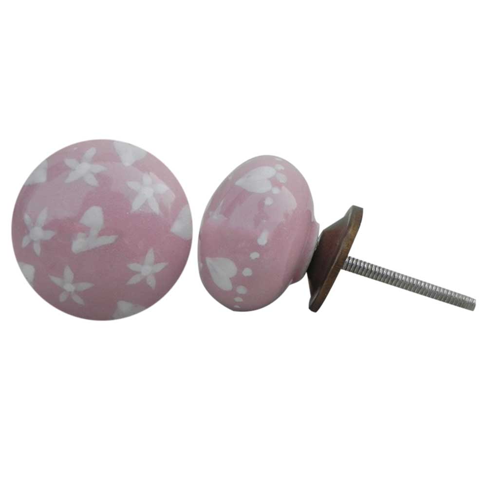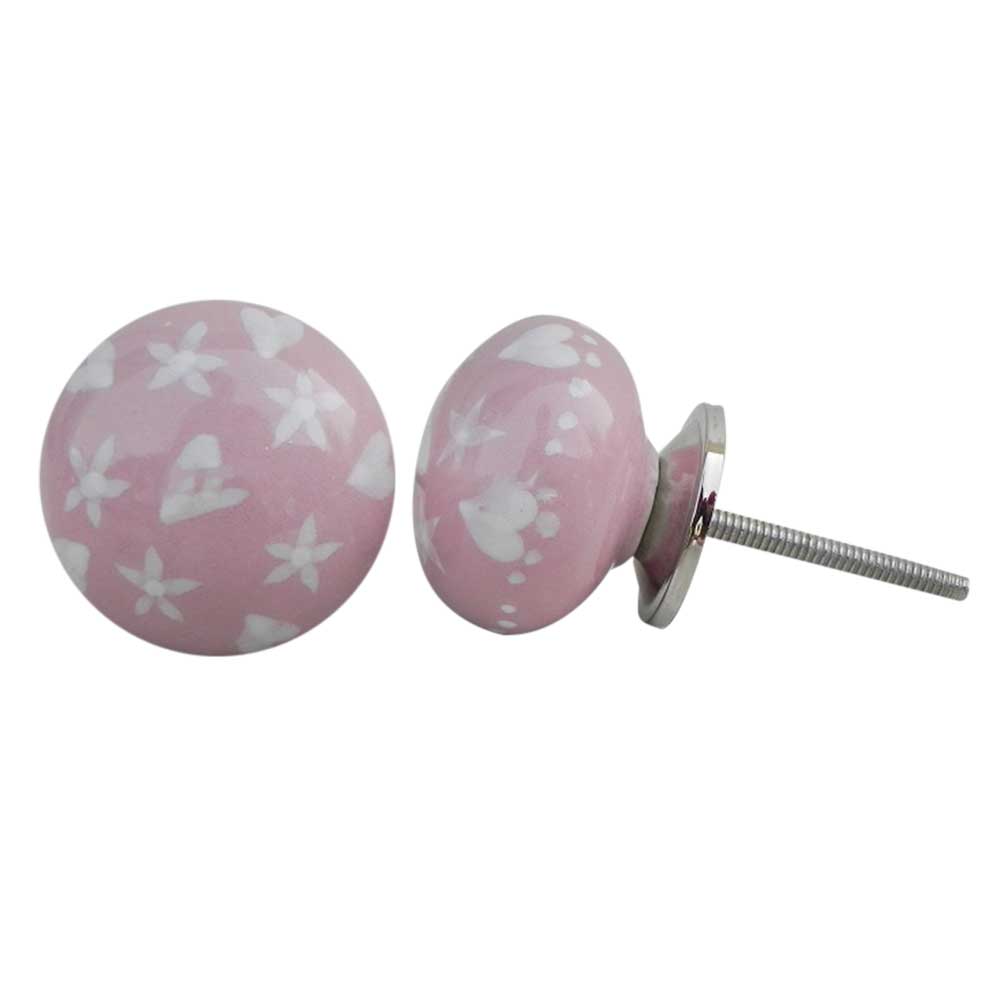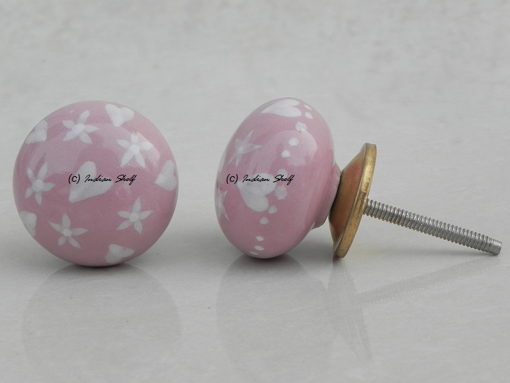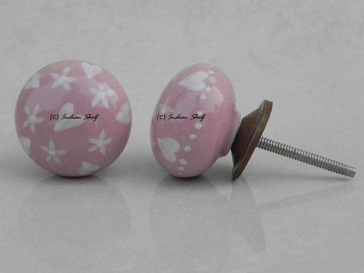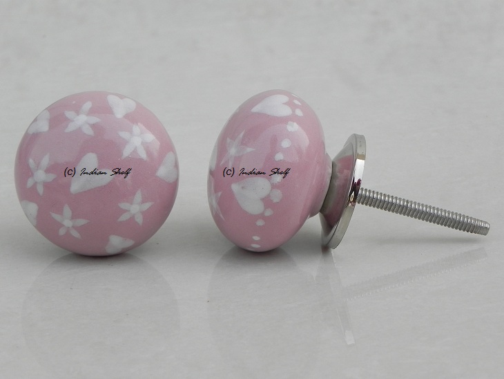 Pink Heart Flat Ceramic Knob. Ideal for kitchen cabinets, kitchen drawers, dining room, bed room, chest drawers, dressing tables, almirah