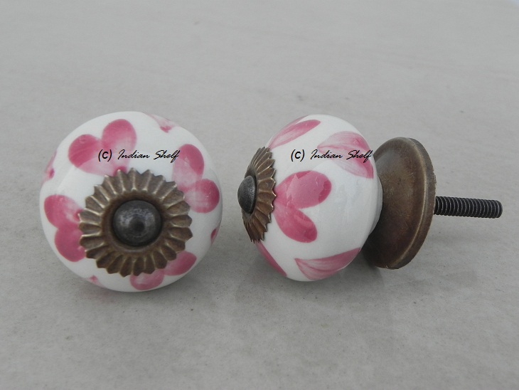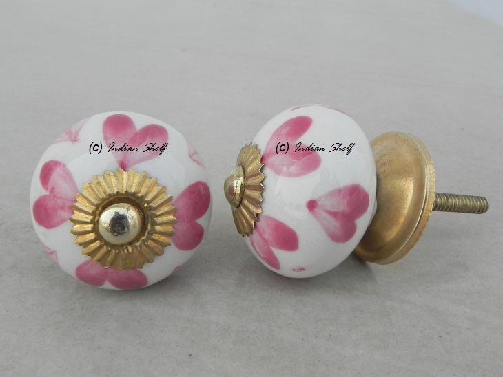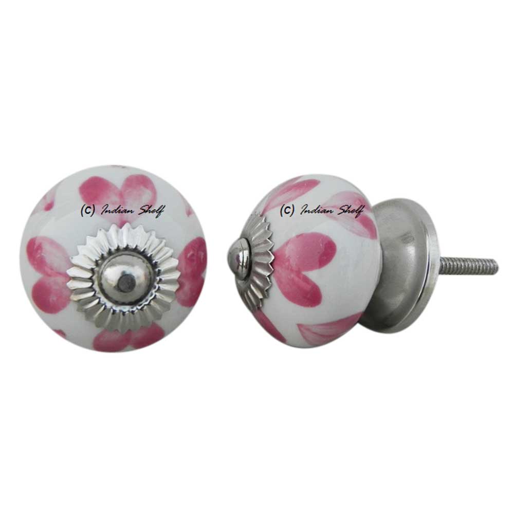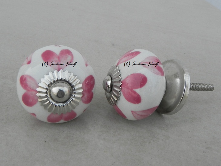 Pink Heart Ceramic Round Knob. Ideal for kitchen cabinets, kitchen drawers, dining room, bed room, chest drawers, dressing tables, almirah