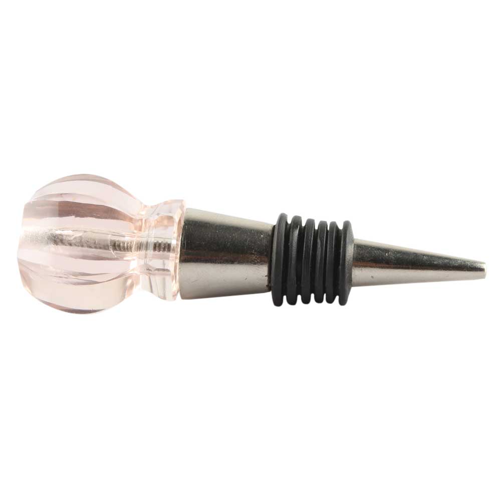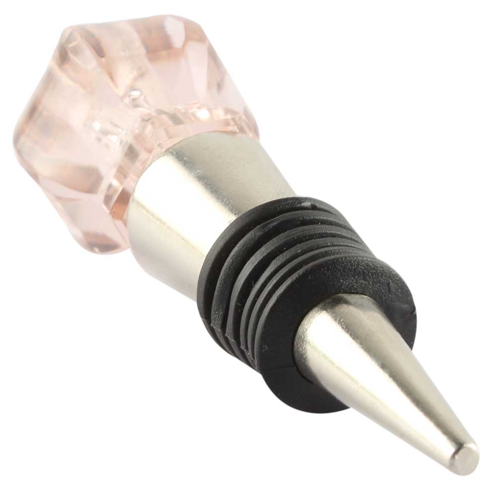 Pink Hexagon Glass Cut Wine Stopper Online. Zinc Alloy Wine Bottle Stopper with Attractive Jute Bag Packaging.