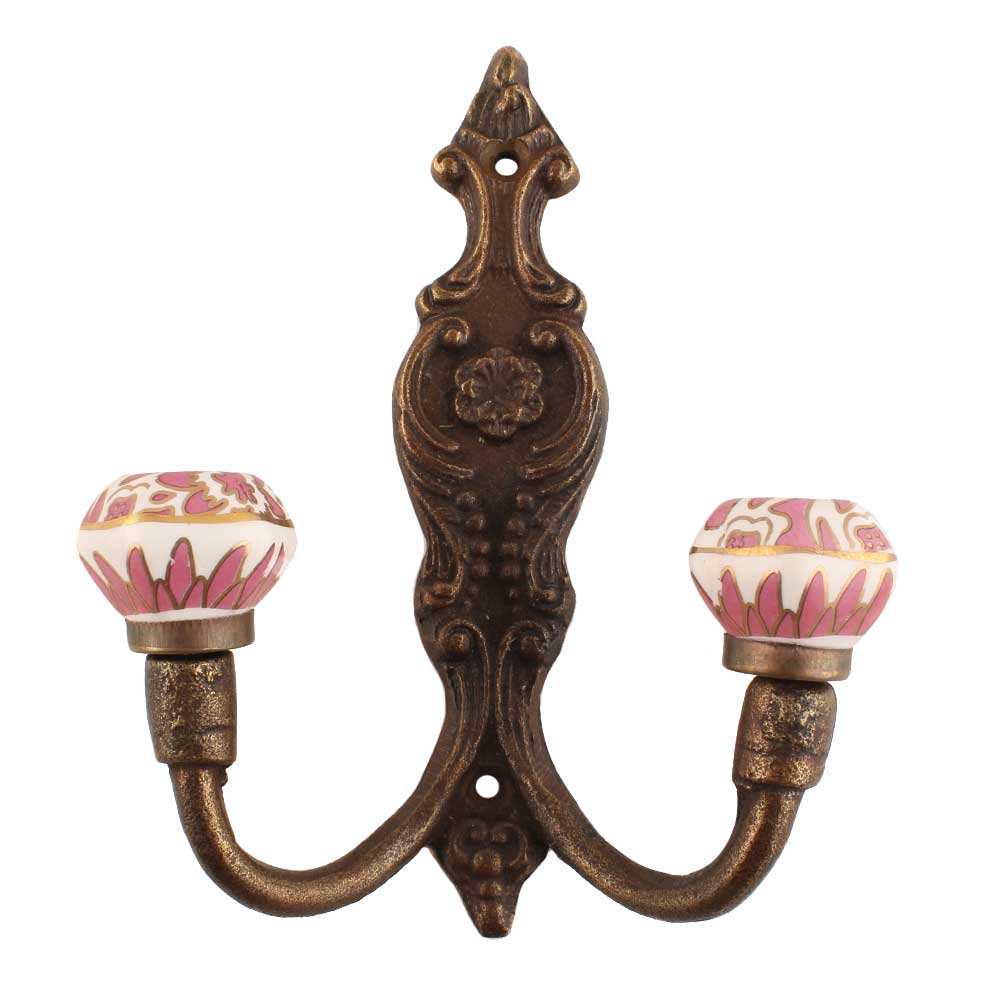 Pink Hexagon Small Ceramic Iron Hook.When Put on Wall or Cabinet It Gives A Sturdy Look. This Hook is Strong Enough to Hold Your Cloths, Keys, Tea Cups, Coffee Mugs, Hand Towels etc.