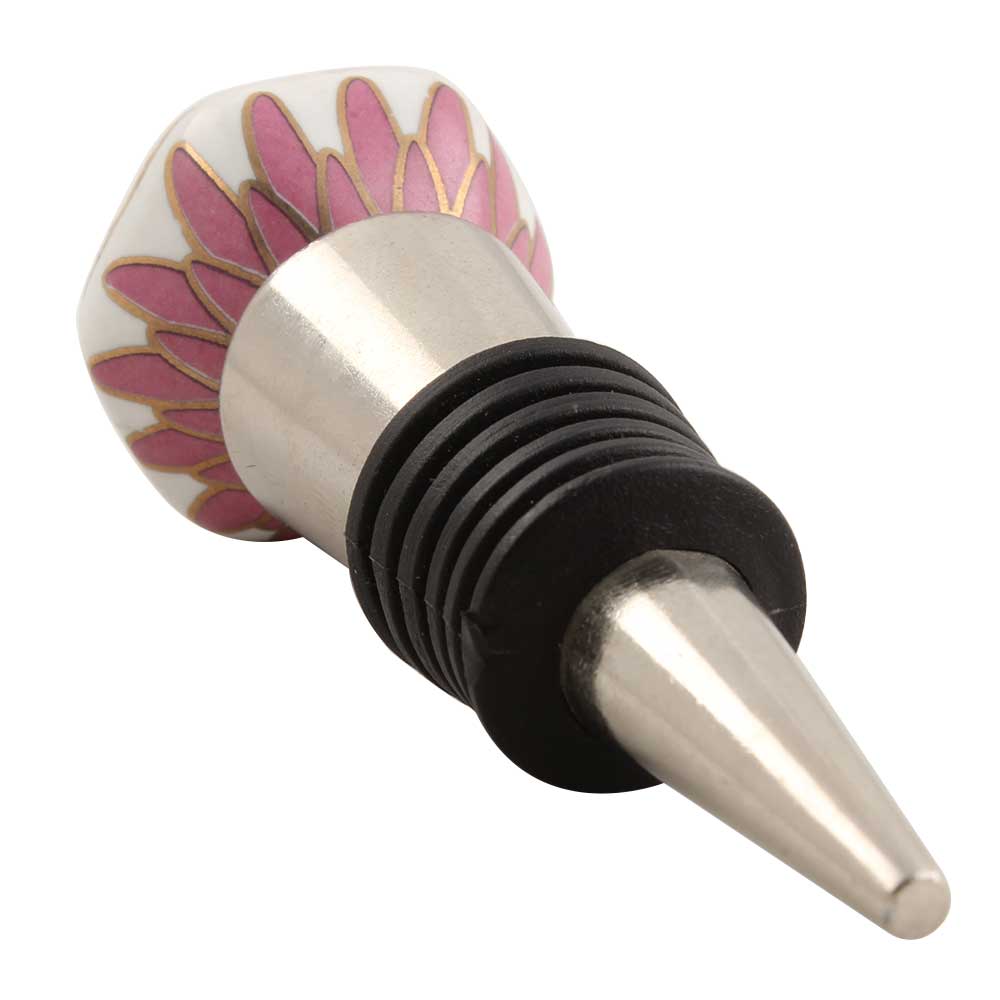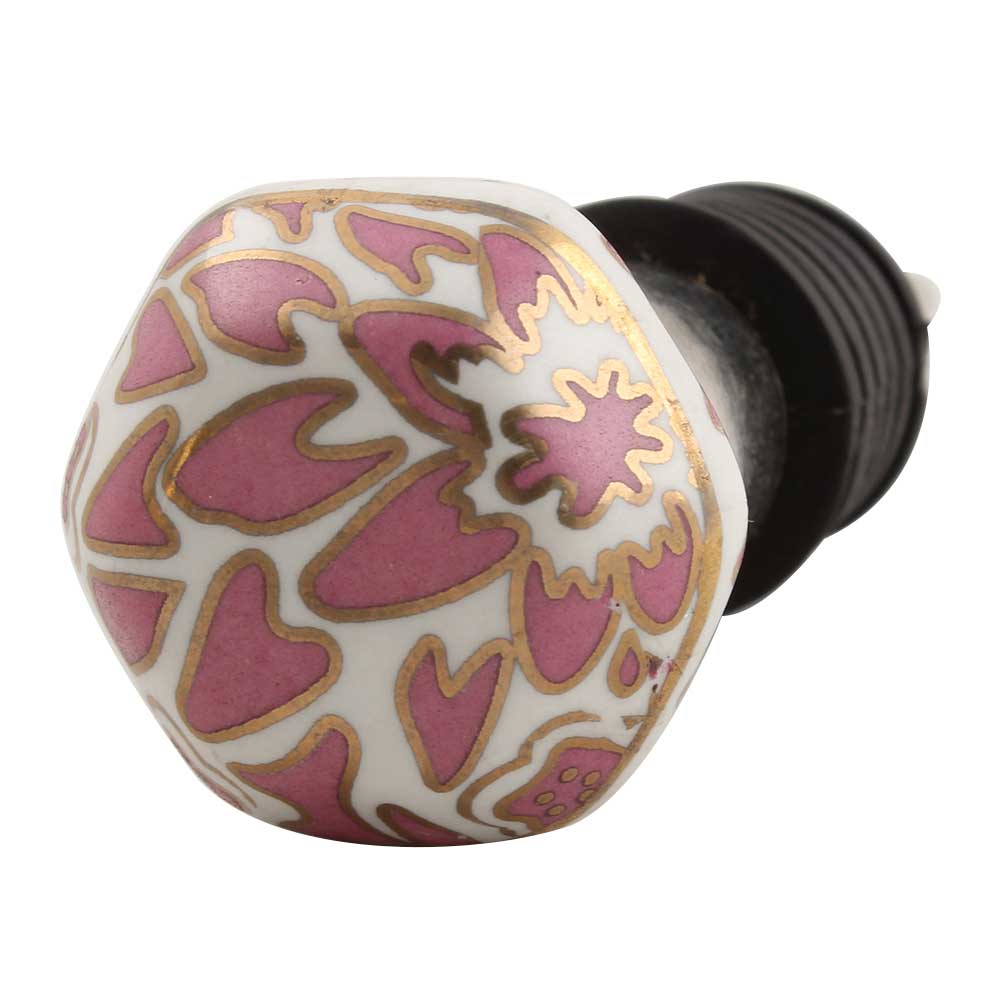 Pink Hexagon Small Ceramic Wine Stopper. Zinc Alloy Wine Bottle Stopper with Attractive Jute Bag Packaging.