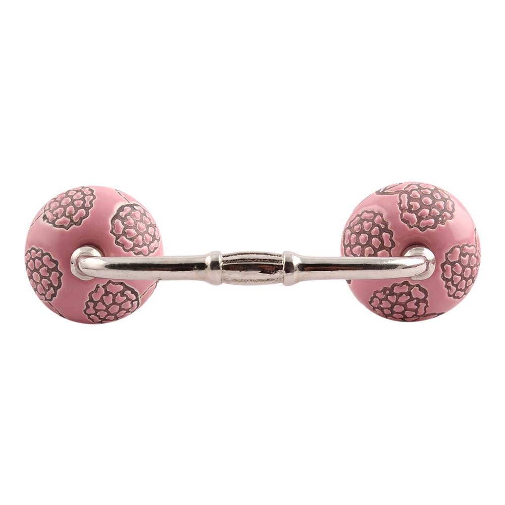 Pink Marigold Etched Ceramic Bridge Handle. Ideal for Drawer, Dresser, Cabinet, Wardrobe, Cupboard and Almirah.