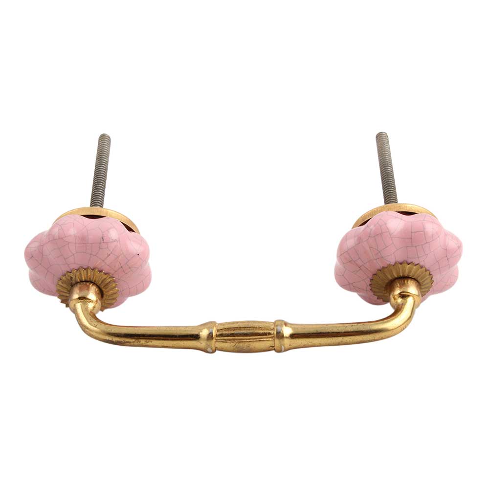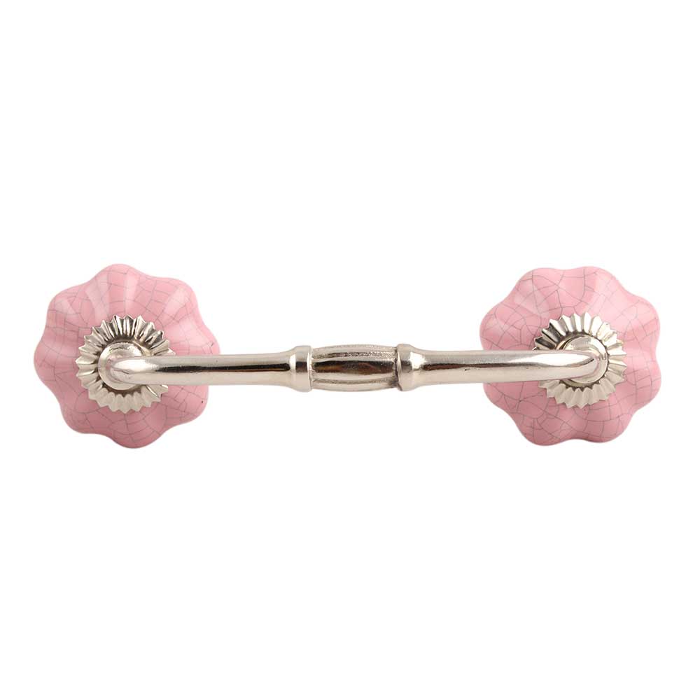 Pink Melon Crackle Ceramic Bridge Handle. Ideal for Drawer, Dresser, Cabinet, Wardrobe, Cupboard and Almirah.