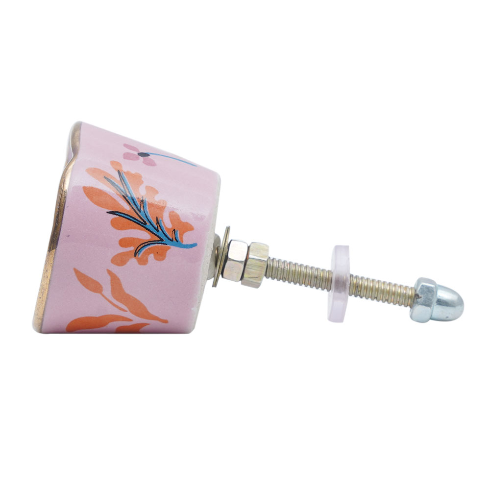 Pink Octagon Ceramic Floral Cabinet Knobs