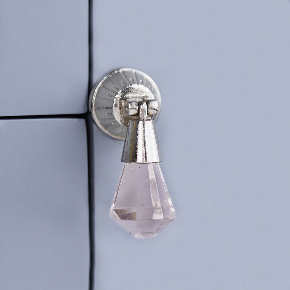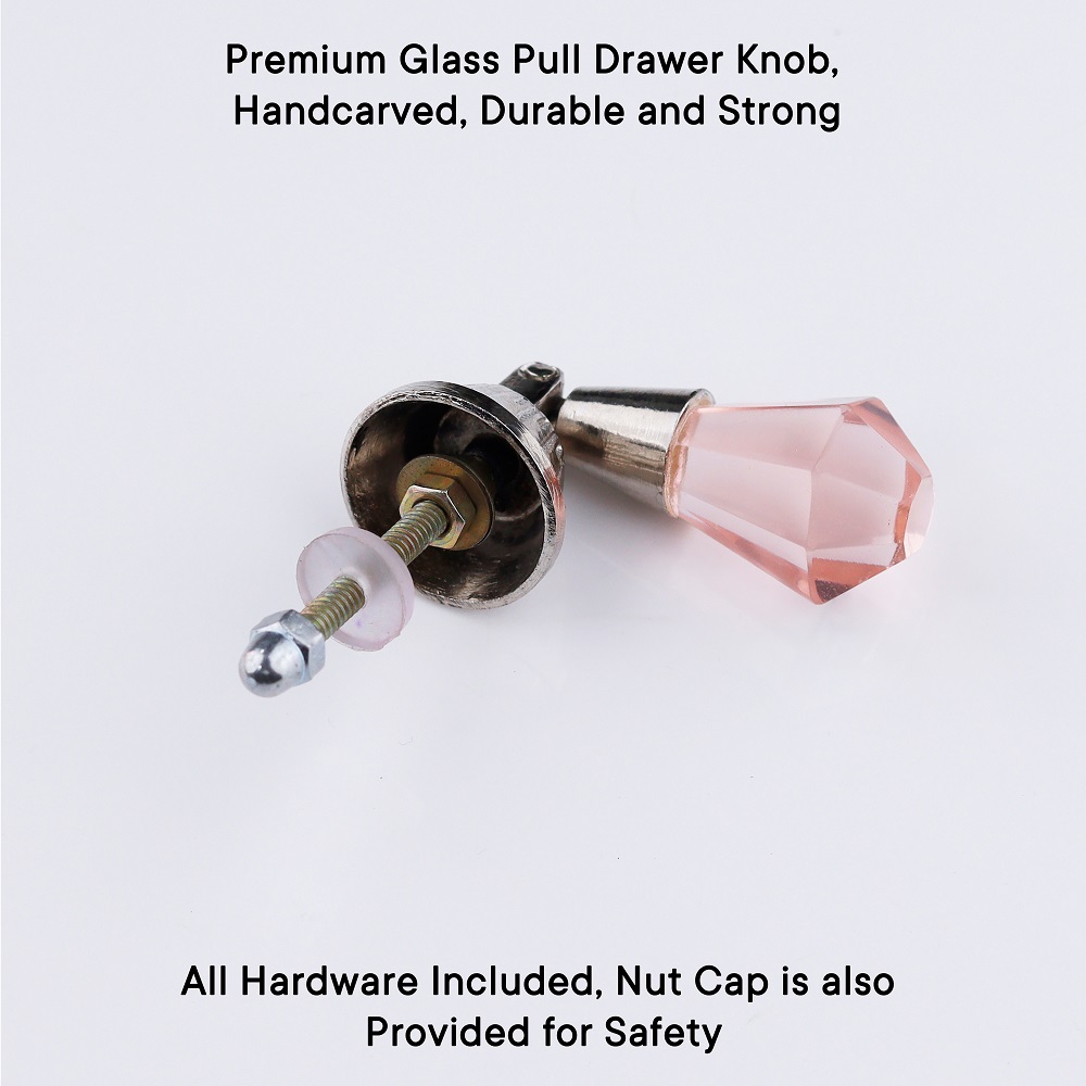 The Pink Octagon Teardrop Glass Pull Drawer Knob is a stunning accent for any drawer or cabinet. With its unique octagon shape and beautiful teardrop design, this knob will add a pop of color and elegance to your furniture, creating a refined and timeless look for your home.