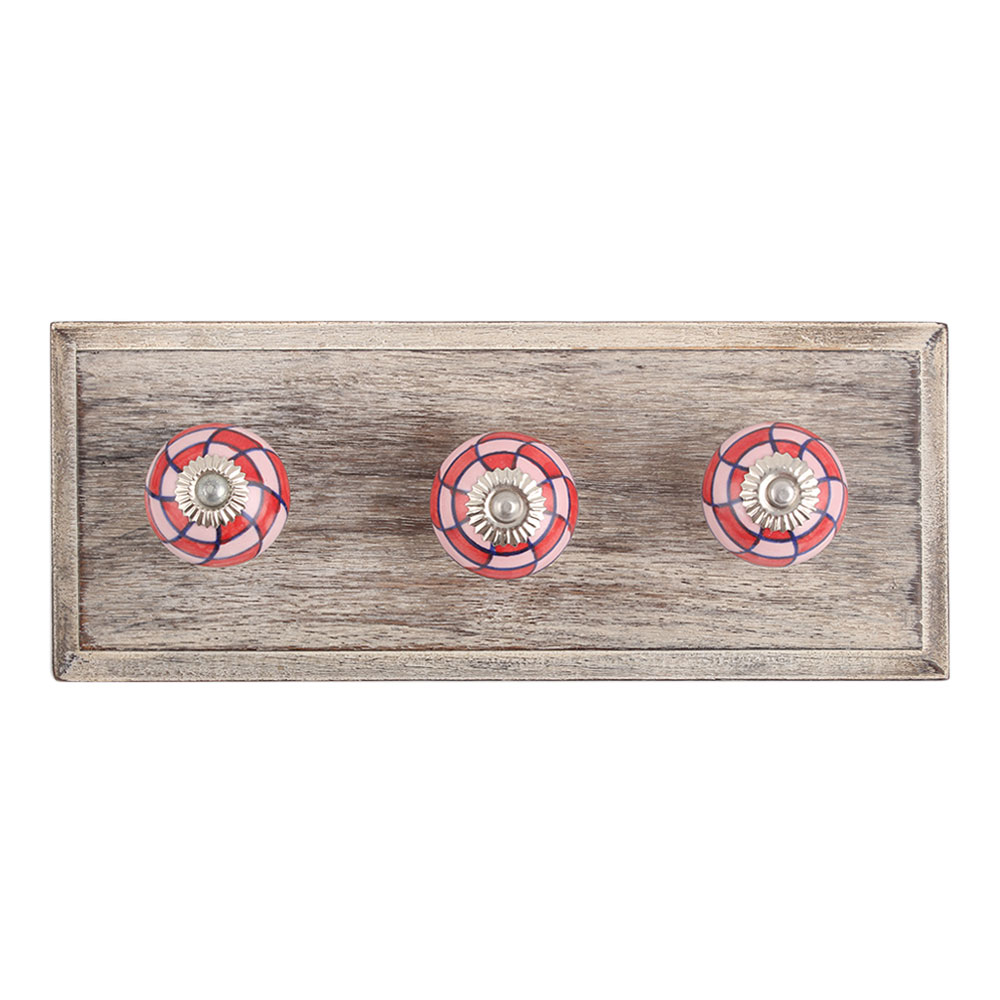 Pink Red Check Ceramic Wooden Hook. A Perfect Complement to the Soft Tone of the Wood are these White Traditional Hat &Amp; Coat Hook Made of Genuine Porcelain and Brass. It can be use to Hang Jewellery, Leashes, Towels, Scarves, Light Weight Sweaters, Caps Etc.
