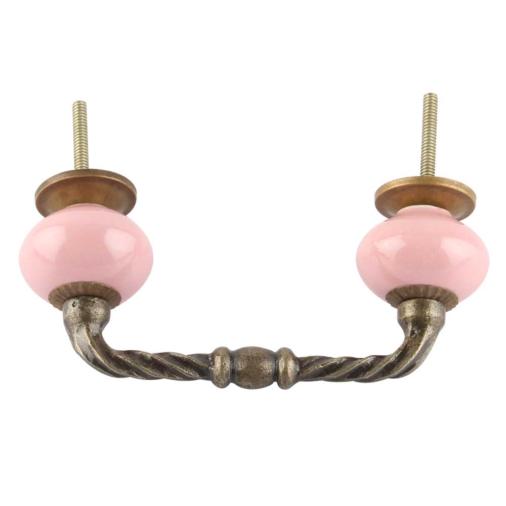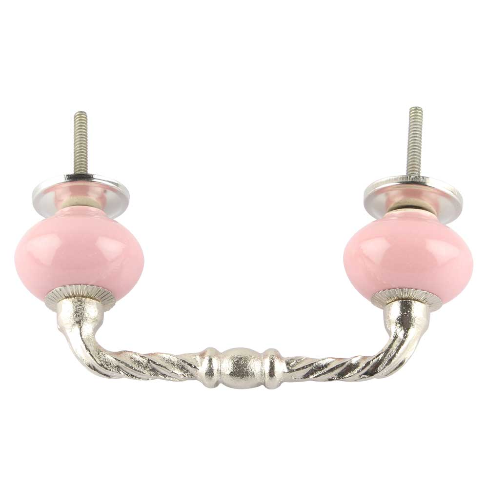 Pink Round Cearmic Cut Bridge Handles. Ideal for Drawer, Dresser, Cabinet, Wardrobe, Cupboard and Almirah etc.