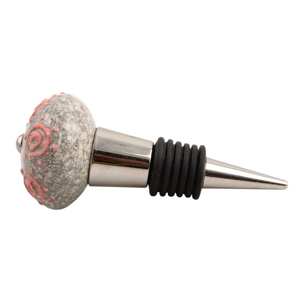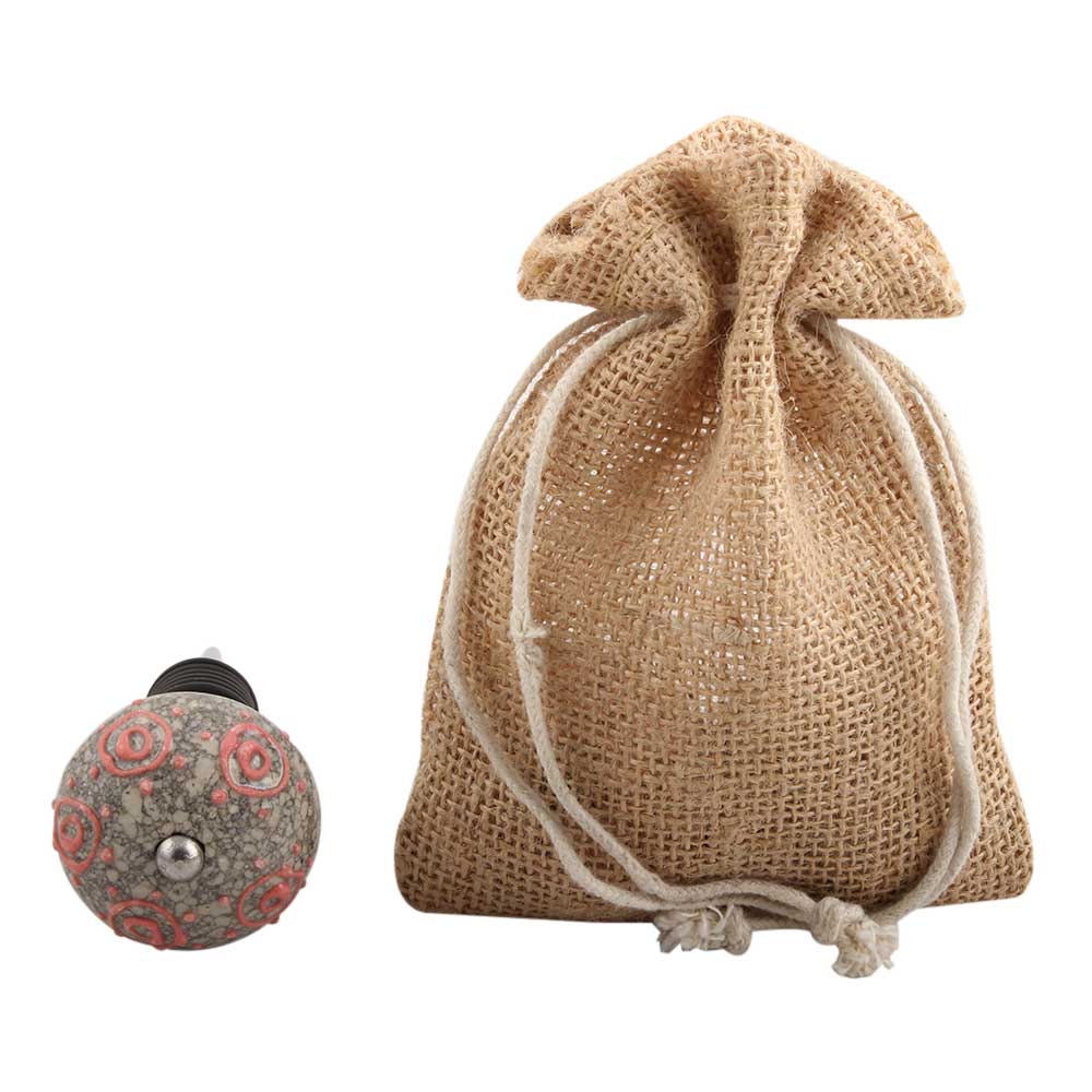 Pink Round Crackle Ceramic Wine Stopper. Zinc Alloy Wine Bottle Stopper with Attractive Jute Bag Packaging.