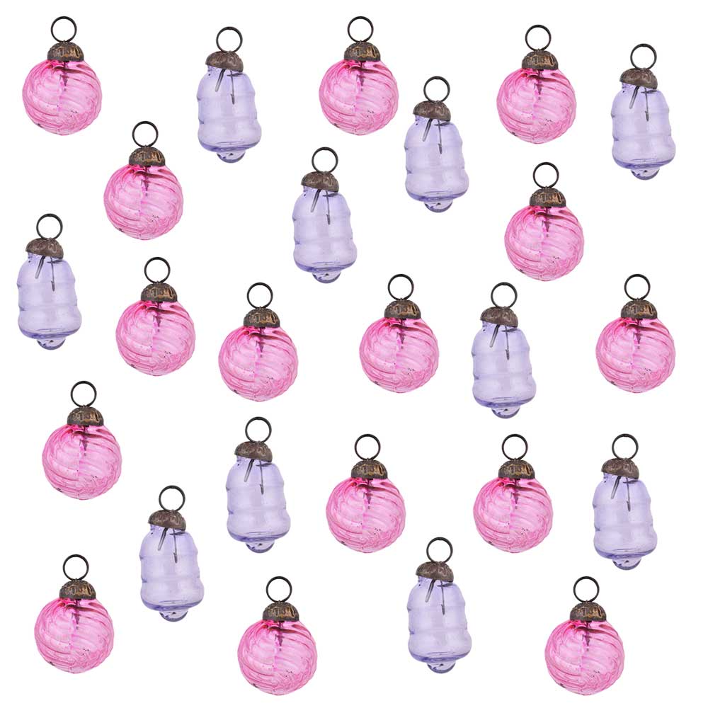 Pink Slate Blue Combo Glass Tiny Christmas Hanging Set of 25