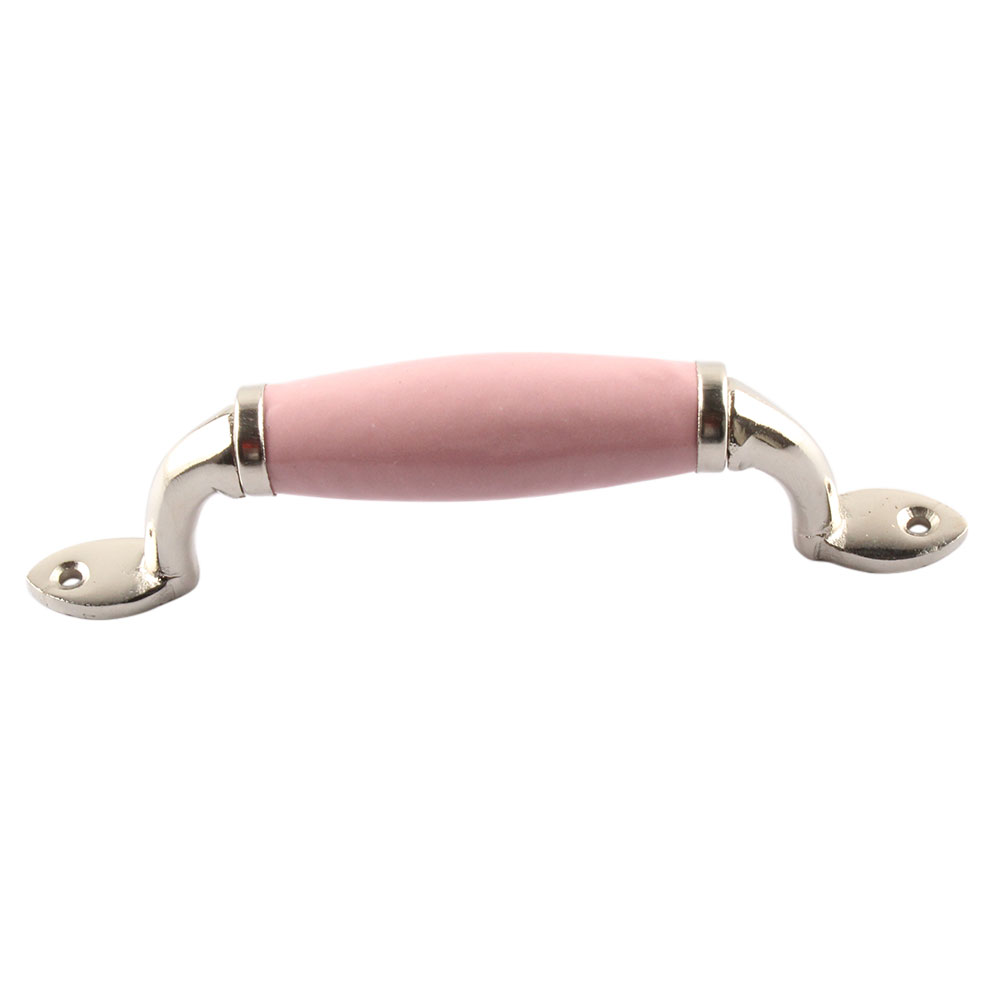 Pink Small Ceramic Silver Door Handles. Ideal for Drawer, Dresser, Cabinet, Wardrobe, Cupboard and Almirah.