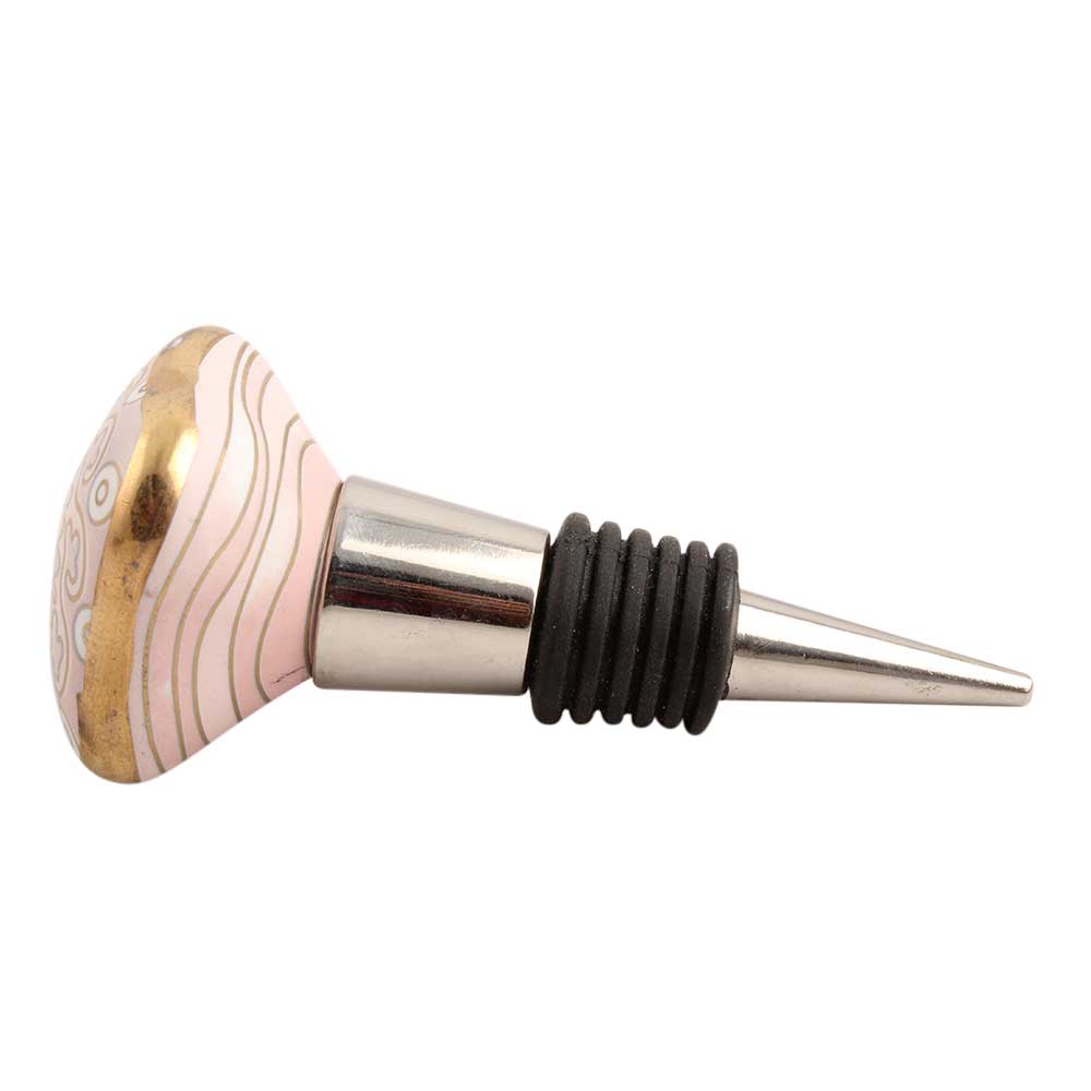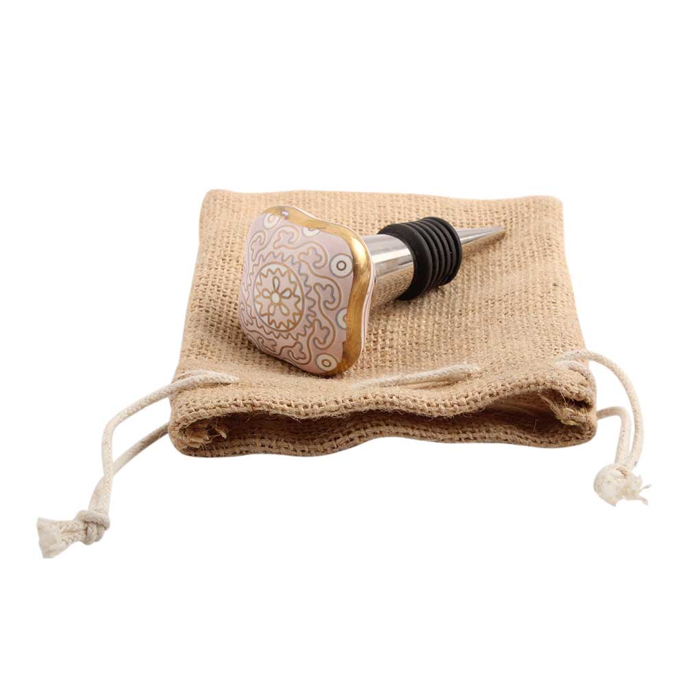 Pink Square Ceramic Floral Wine Stopper. Zinc Alloy Wine Bottle Stopper with Attractive Jute Bag Packaging.