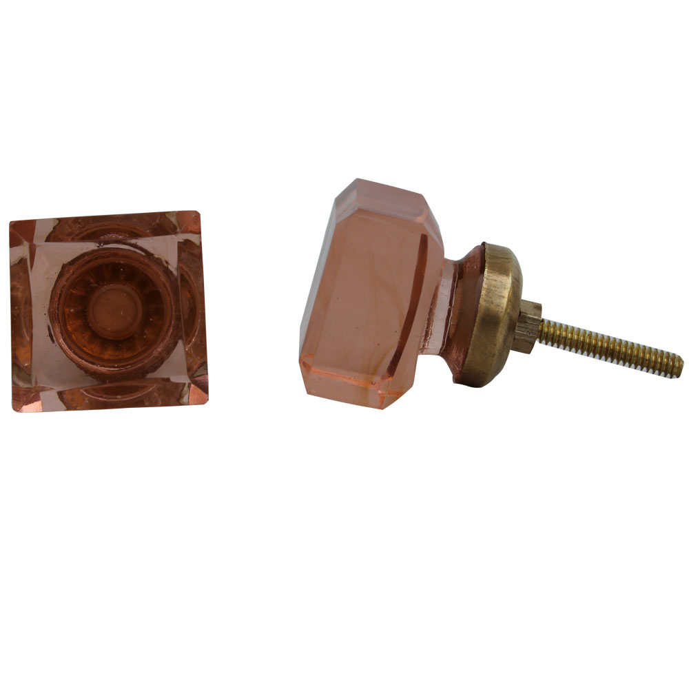 Pink Square Glass Knobs. Ideal for Drawer, Dresser, Cabinet, Wardrobe, Cupboard and almirah