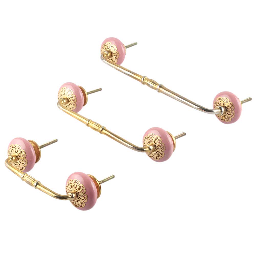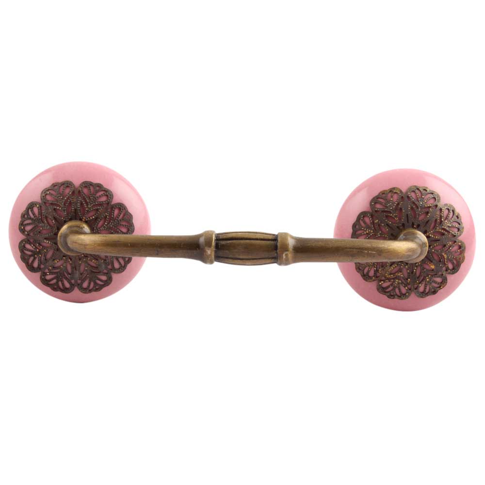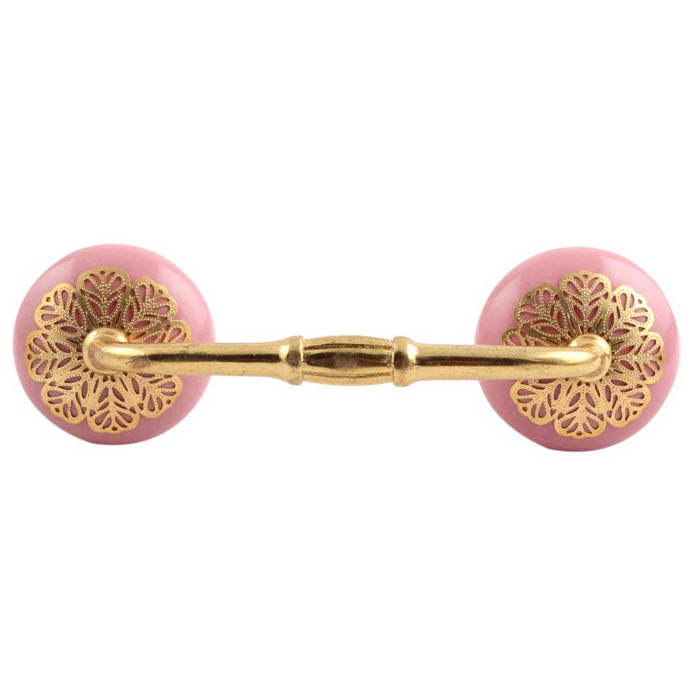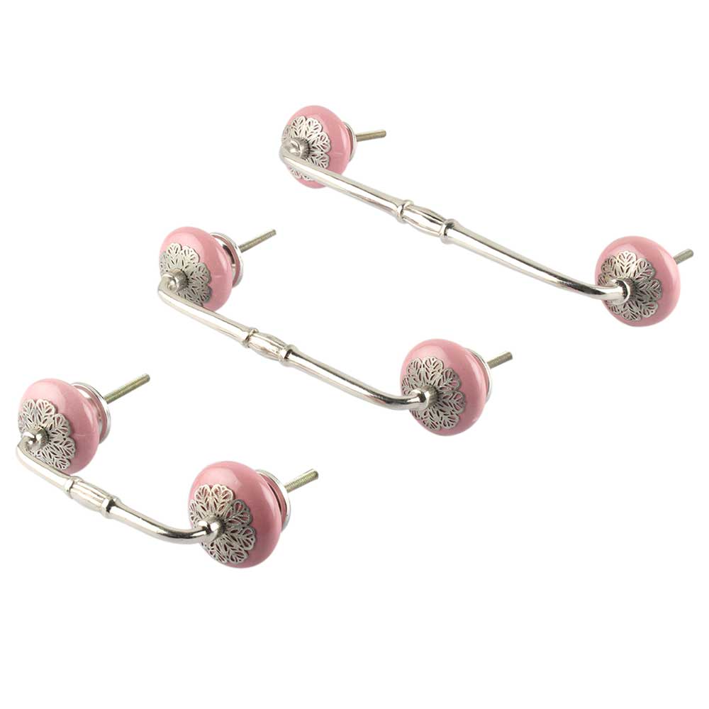 Pink Strewn Flat Ceramic Bridge Handle. Ideal for Drawer, Dresser, Cabinet, Wardrobe, Cupboard and Almirah.