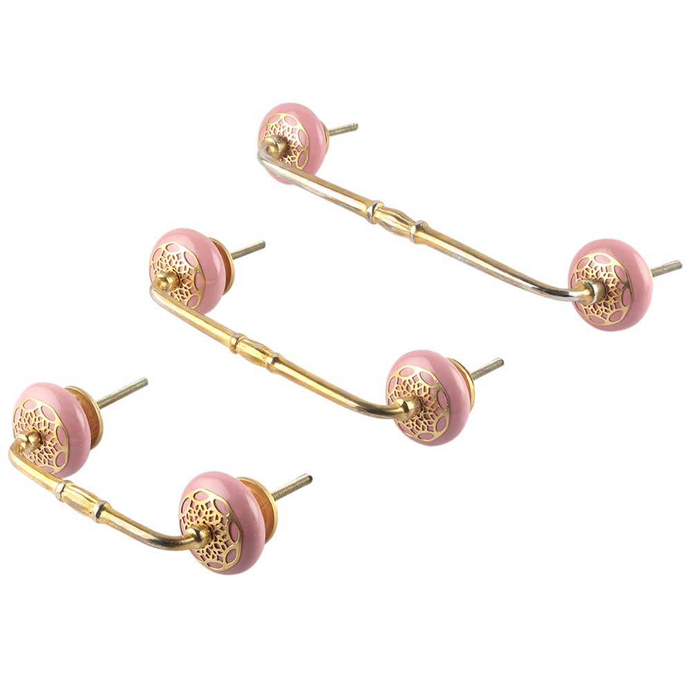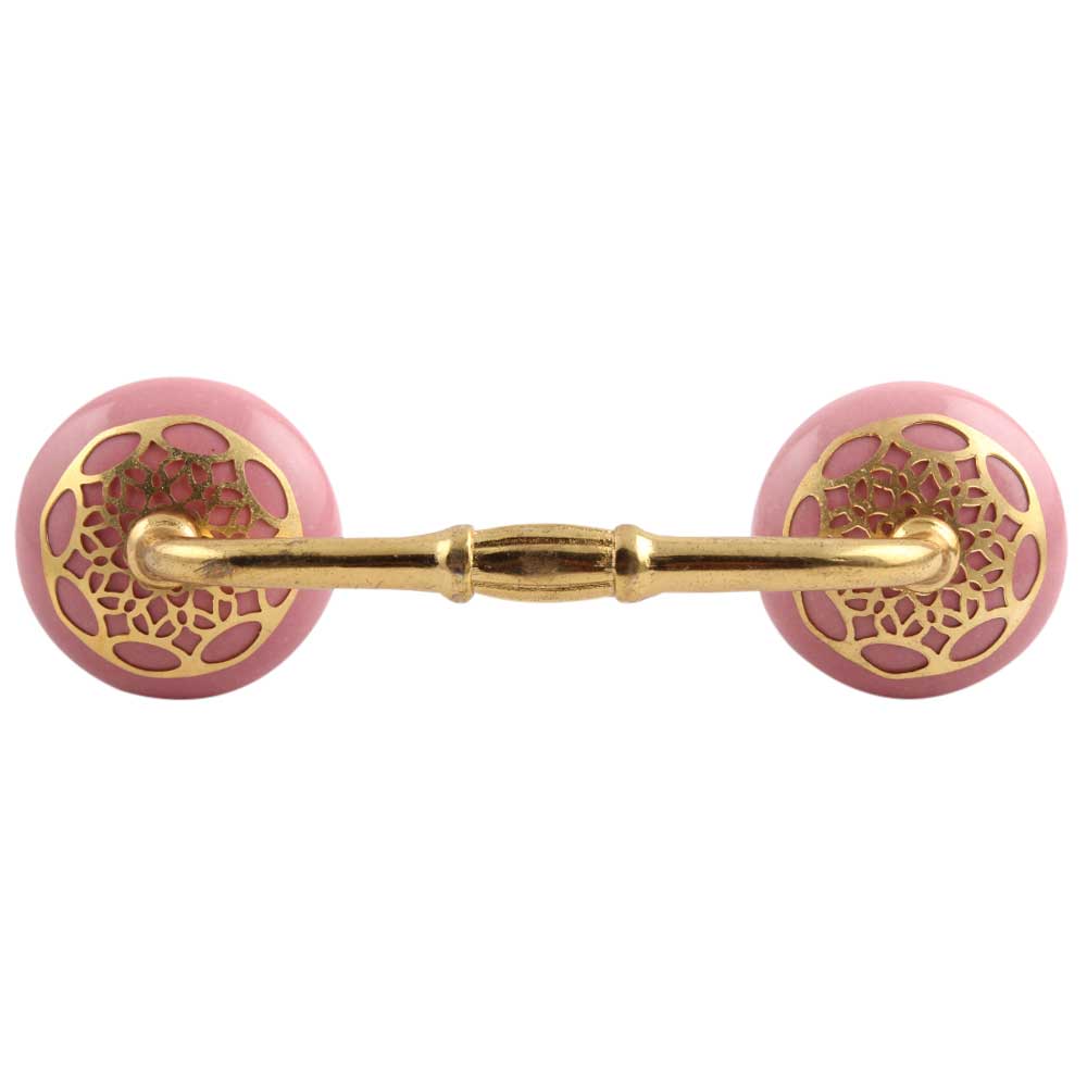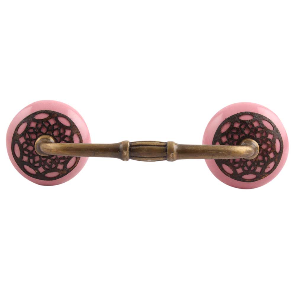 Pink Strewn Flat Ceramic Bridge Handle. Ideal for Drawer, Dresser, Cabinet, Wardrobe, Cupboard and Almirah.