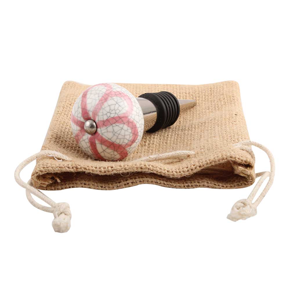Pink Sunflower Crackle Ceramic Wine Stopper.zinc alloy wine bottle stopper with attractive Jute Bag Packaging.