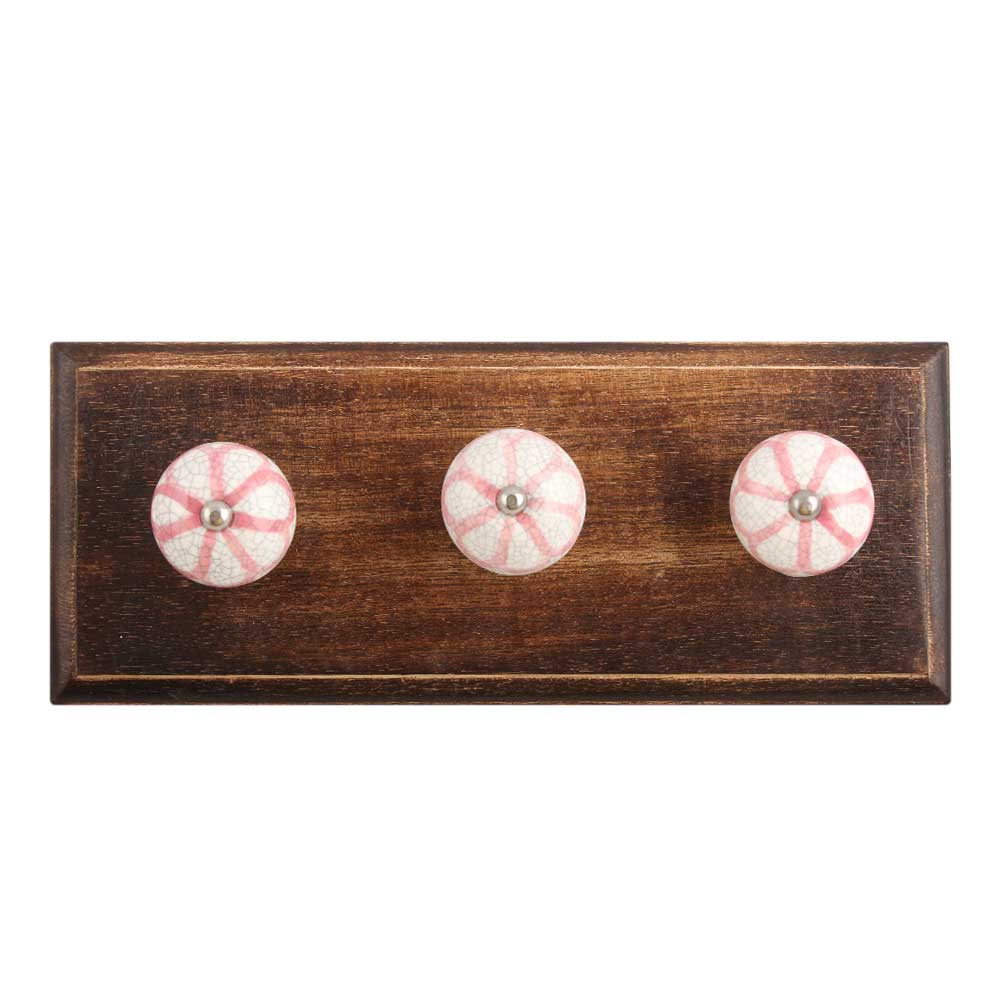 Pink Sunflower Crackle Ceramic Wooden Hook. A Perfect Complement to the Soft Tone of the Wood are these White Traditional Hat & Coat Hook Made of Genuine Porcelain and Brass. It can be use to Hang Jewellery, Leashes, Towels, Scarves, Light Weight Sweaters, Caps Etc.