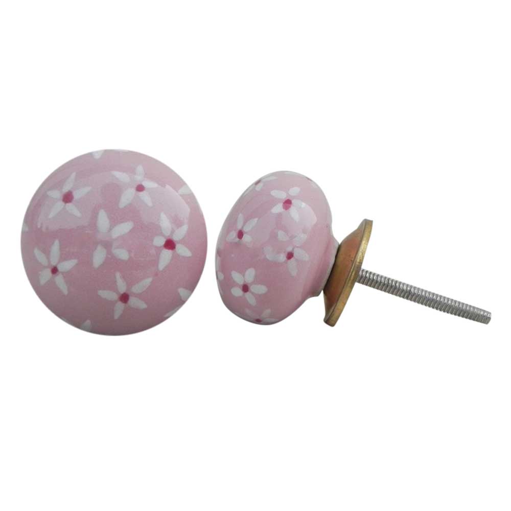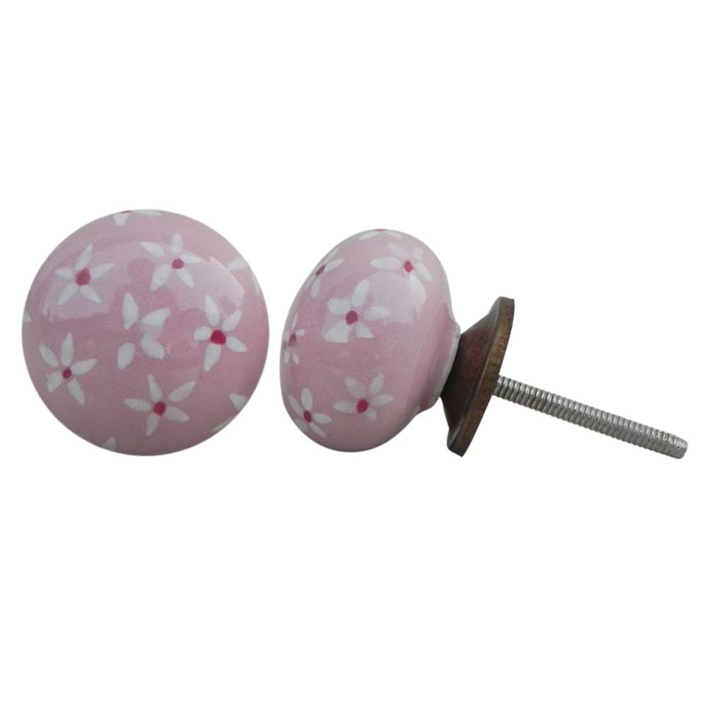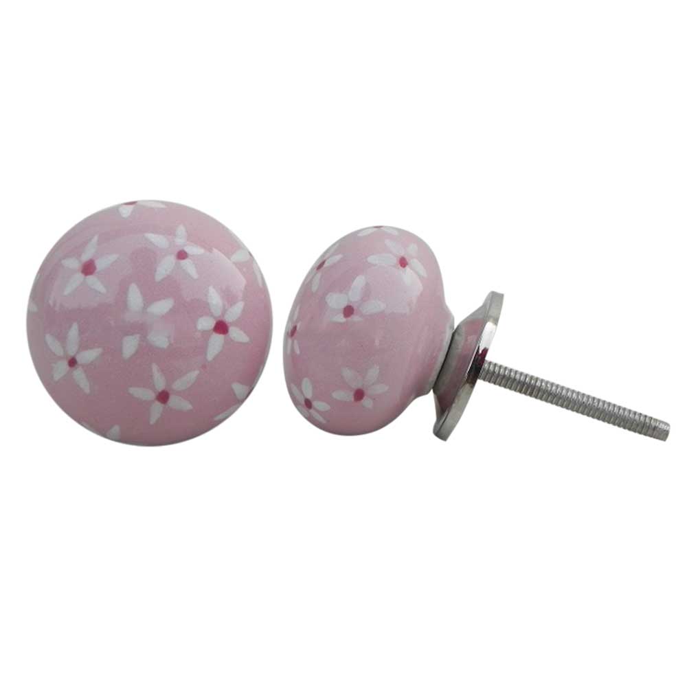 Pink Tiny Flower Ceramic Flat Knob. Ideal for kitchen cabinets, kitchen drawers, dining room, bed room, chest drawers, dressing tables, almirah