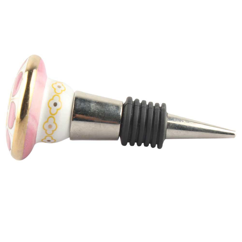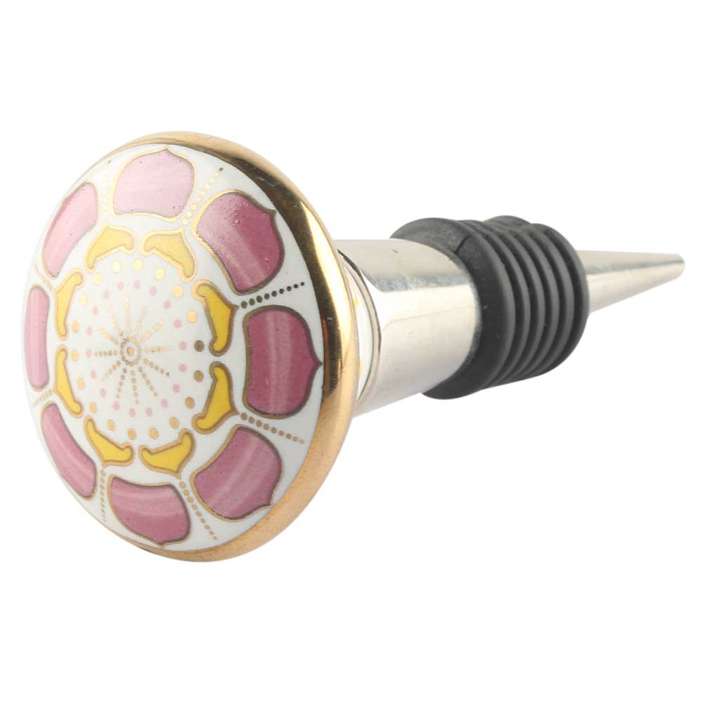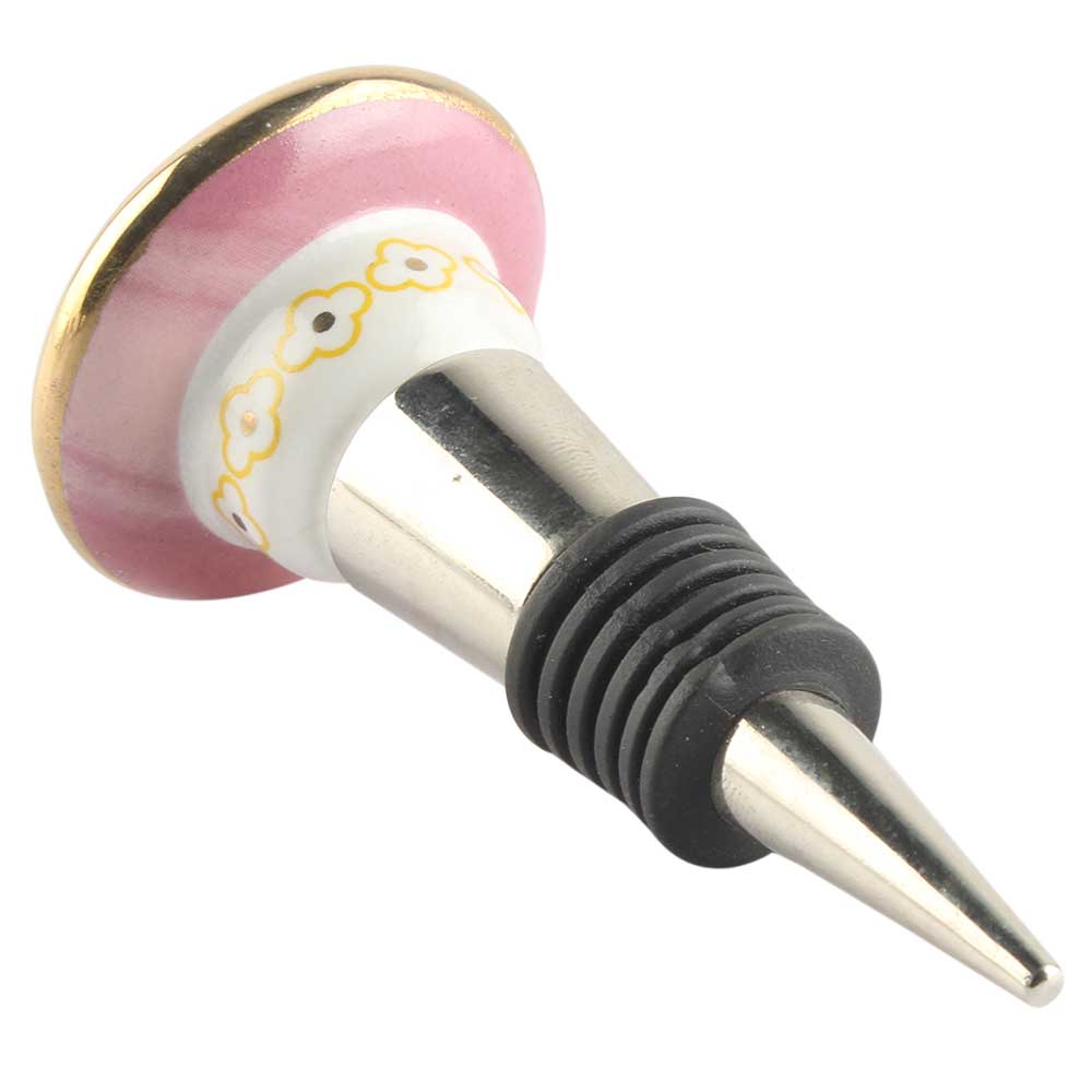Pink Wheel Flower Ceramic Wine Stopper. Zinc Alloy Wine Bottle Stopper with Attractive Jute Bag Packaging.