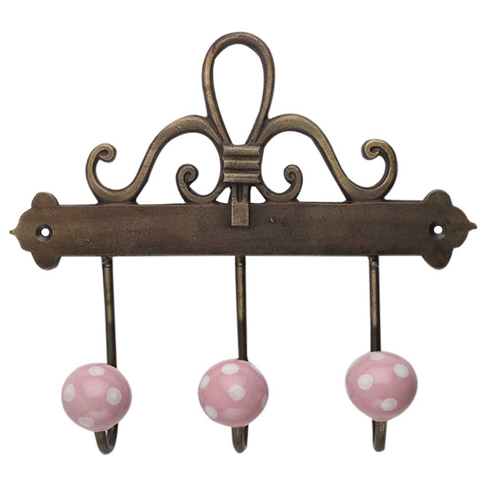 Pink White Dot Ceramic Iron Hook. A Perfect Complement to the Soft Tone of the Wood are these White Traditional Hat &Amp; Coat Hook Made of Genuine Porcelain and Brass. It can be use to Hang Jewellery, Leashes, Towels, Scarves, Light Weight Sweaters, Caps Etc.