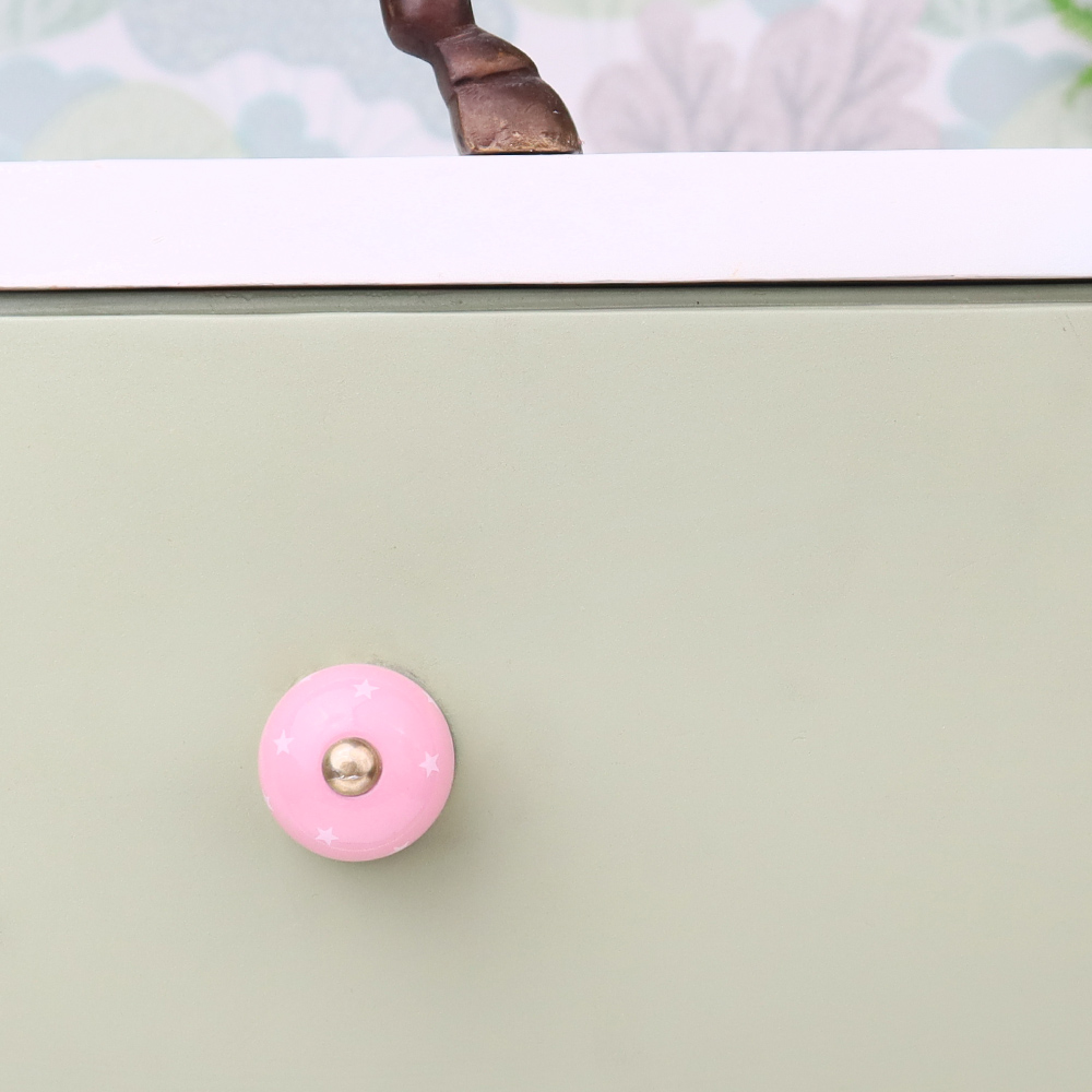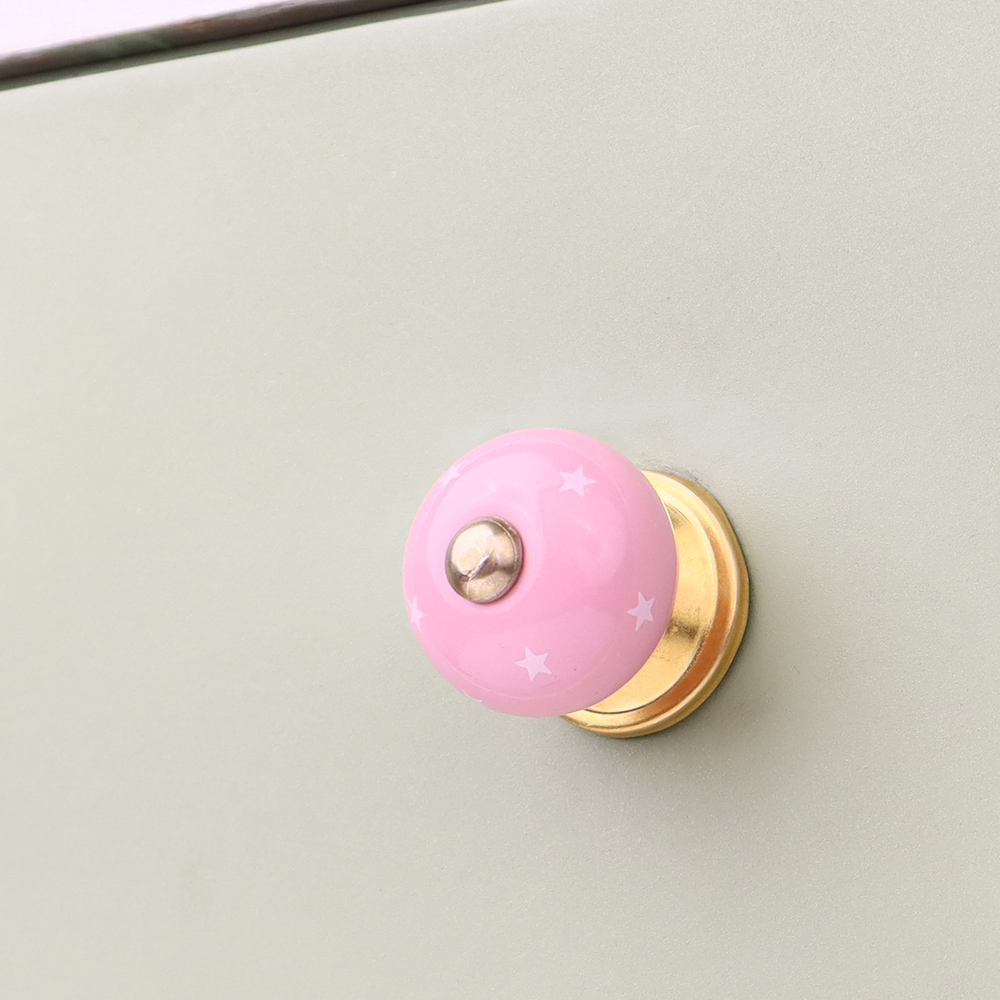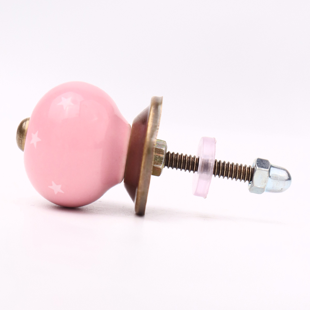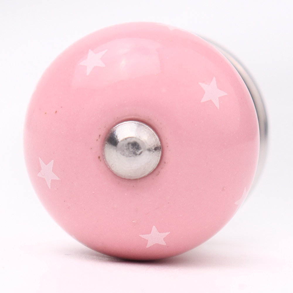 Pink White Tiny Star Pattern Cabinet Knobs. Ideal for Drawer, Dresser, Cabinet, Wardrobe, Cupboard and Almirah.