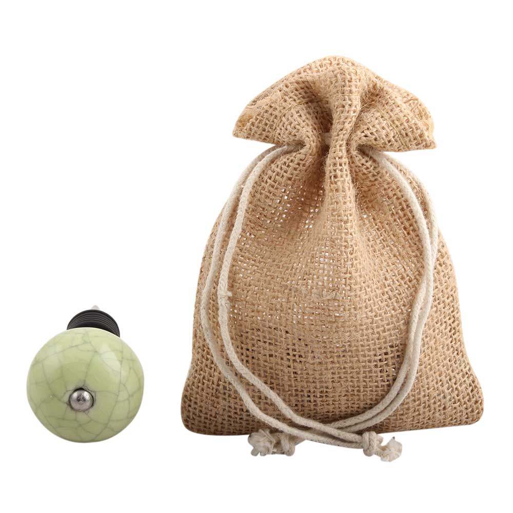 Pistachio Green Crackle Ceramic Wine Stopper.zinc alloy wine bottle stopper with attractive Jute Bag Packaging.