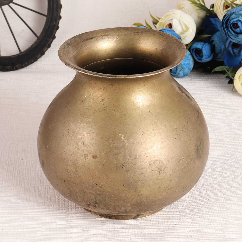 A round water pot with elegant brown finish that will match your interior and enhance your home decor. This brass pot can be placed as a flower pot at home, restaurant, hotel, shop, cafe, spa or office and is guaranteed to be a focal point of attraction for your visitors and guests. This exquisite piece is handcrafted by professional Indian artisans and adds an aesthetic touch to the interior design. It is crafted from the finest brass, making it an extraordinary piece for your collection. Its design makes it the first choice of collectors who want to add it to their vintage art collection. An incredible piece to give to your loved ones on special or festive occasions.