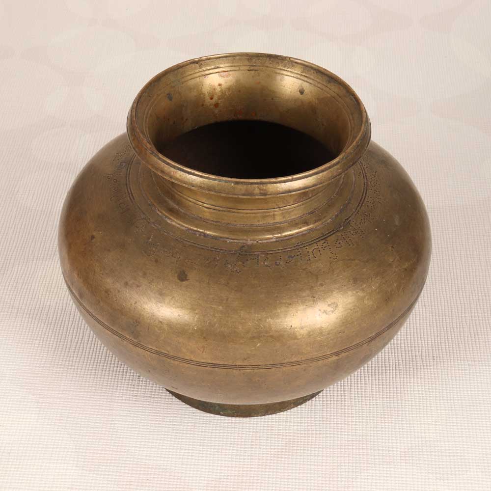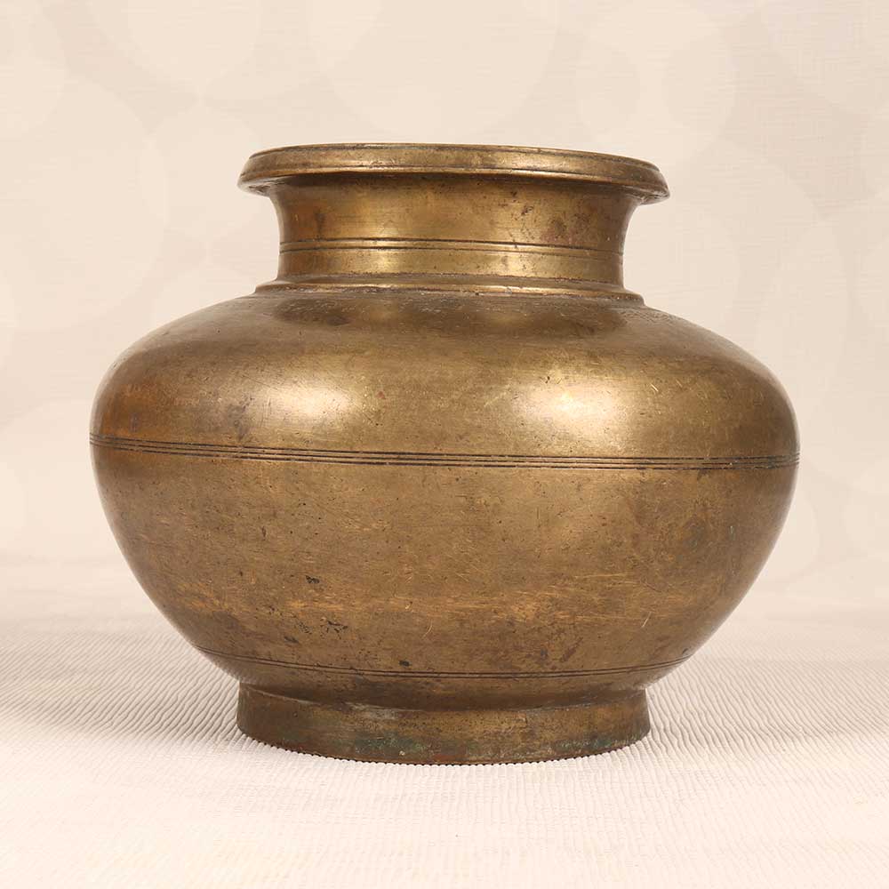 Embrace spiritual tranquility with this antique-style brass holy water pot. Handcrafted in the South Indian Art tradition, this elegant pot features a vintage plain brown finish reminiscent of ancient vessels. Whether holding sacred water for rituals or a fresh floral bouquet, this pot brings serenity to any space. The vintage design of this brass pot evokes a sense of spirituality and ritual. Place it upon your meditation altar to enhance your practice and connection to the divine. Use it to hold pure water for cleansing and blessings during prayer or puja. The versatile pot also allows you to create peaceful floral arrangements that uplift any room with natural beauty and fragrance. Bring spiritual solace into your daily life with this holy water pot. Handmade in the traditional style of South Indian Art, this brass pot provides a sacred vessel for rituals or flowers with its gracefully antique design. Infuse your home with serenity.