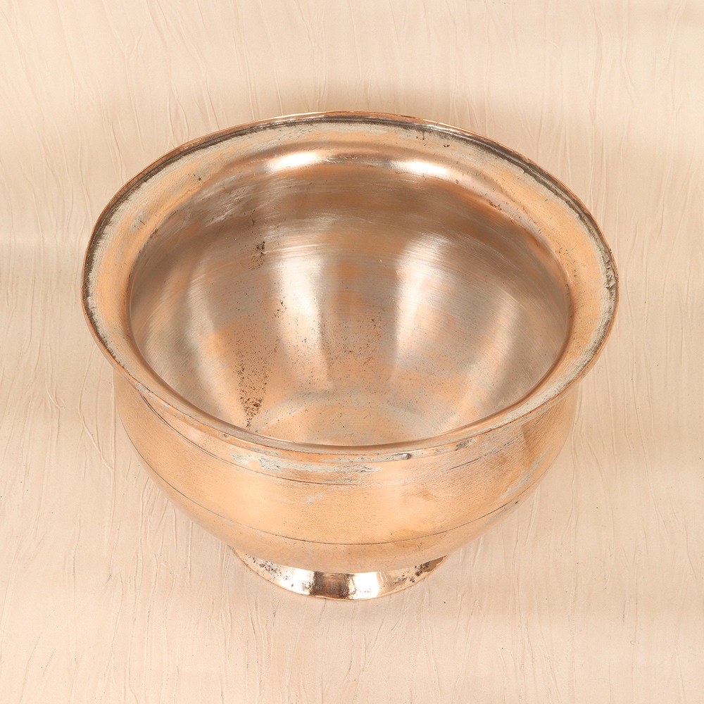 Embrace the captivating essence of Islamic artistry with this exquisite copper fruit bowl, a statement piece that will elevate your dining experience. Meticulously crafted by skilled artisans, this bowl features intricate patterns and motifs that pay homage to the region's iconic design heritage, infusing your home with a touch of cultural sophistication. Beyond its visual appeal, this bowl's sturdy copper construction ensures exceptional durability, resisting tarnish and corrosion for years to come. The generous diameter provides ample space to beautifully display a bountiful array of fresh, seasonal produce, creating a visually stunning centerpiece that will captivate your guests. Versatile in its design, the bowl's plain brown finish seamlessly complements a variety of décor styles, from rustic and earthy to modern and minimalist. Pair it with natural wood accents and lush greenery for a harmonious, nature-inspired look, or let it shine as the focal point of a more formal, elegant dining area. Elevate your everyday with this captivating copper fruit bowl, a timeless piece that celebrates the rich cultural heritage of the Islamic world while adding a touch of refined sophistication to your home.