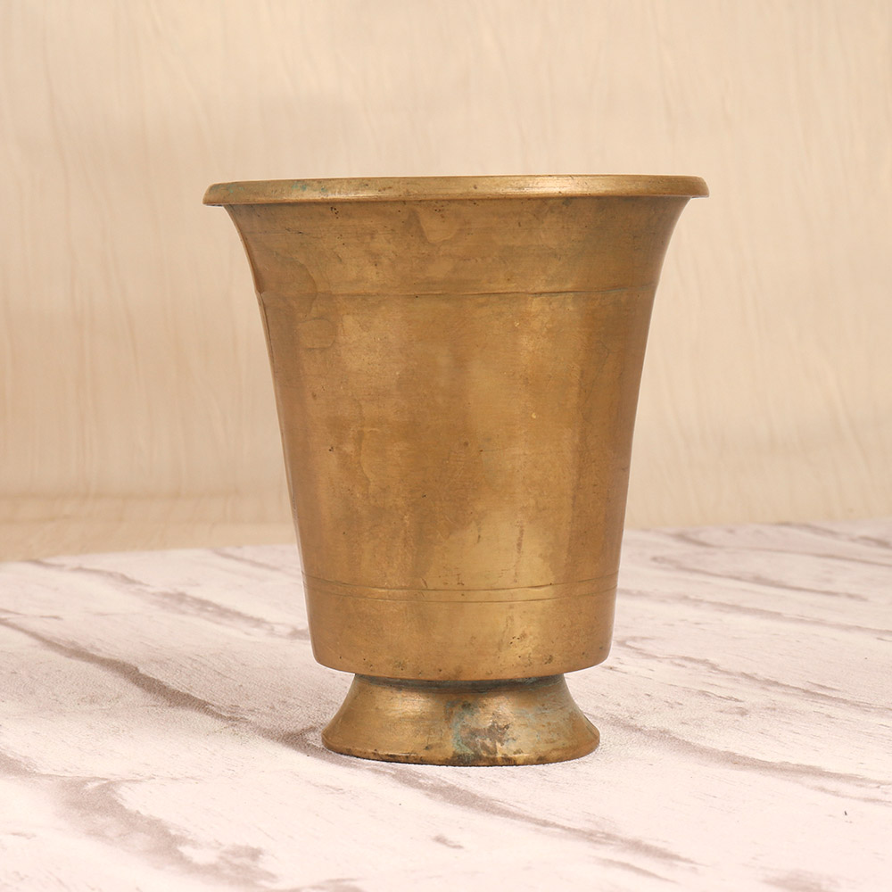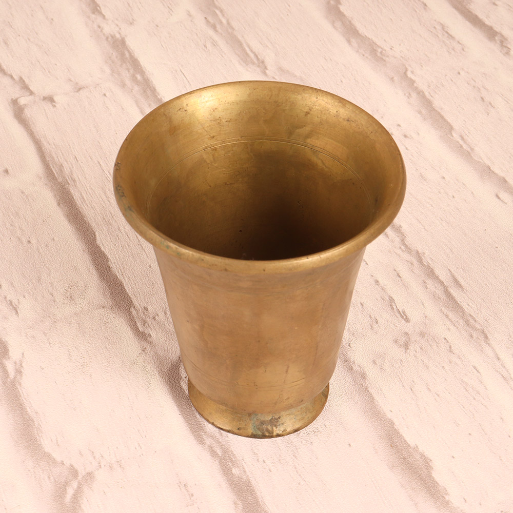 Reconnect with the timeless wisdom of South Indian spirituality by incorporating this exquisite vintage brass holy water cup into your daily rituals. Crafted from premium brass for a classic, heirloom-quality look, this cup's simple yet elegant design makes it a beautiful centerpiece for your altar or meditation space. The smooth, plain brown finish complements any decor, allowing this cup to blend seamlessly into your sacred space. And thanks to its solid brass construction, this cup is built to last, becoming a cherished companion on your spiritual journey. Whether you're a seasoned yogi, a devotee of South Indian deities, or simply seeking to deepen your connection to the divine, this vintage brass holy water cup is an essential tool for honoring ancient traditions and elevating your practice. Invite the wisdom of the ages into your home and experience the transformative power of South Indian spirituality.