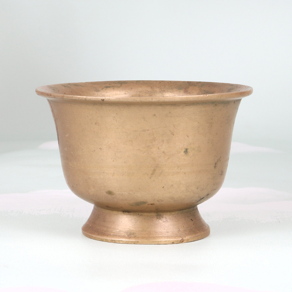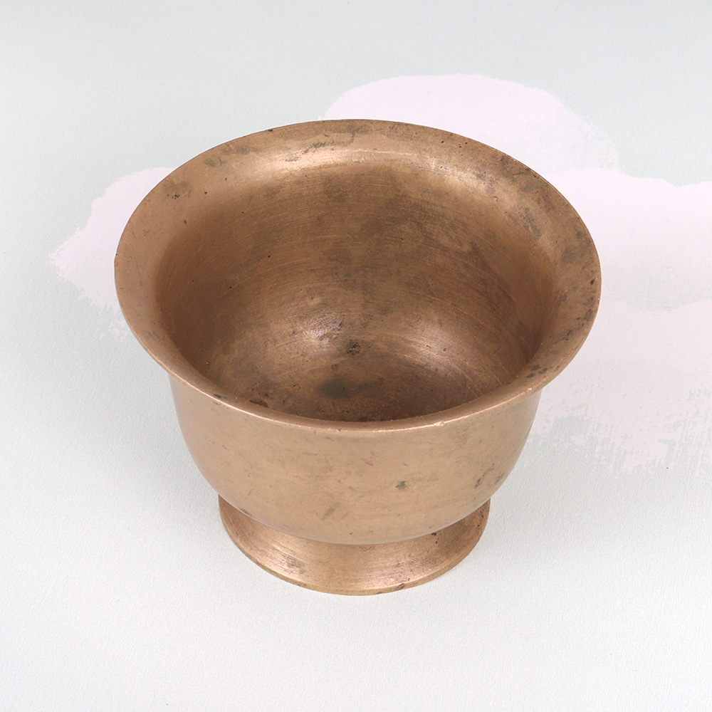 Elevate your daily prayer and meditation rituals with the Vintage Brass Kumkum Bowl. This stunning vessel combines timeless Indian craftsmanship with a serene, minimalist design that will transport you to a higher plane of consciousness. Infuse your sacred space with the ancient wisdom of India's spiritual traditions. Fill this Vintage Brass Kumkum Bowl with kumkum, flowers, or other ritual items to create a calming, meditative ambiance. Its simple, elegant design will become the centerpiece of your prayer altar, elevating your daily puja to new heights. This heirloom-quality piece is an investment that will be cherished for generations. Bring the timeless beauty of Indian craftsmanship into your home and experience the profound impact it can have on your spiritual practice.