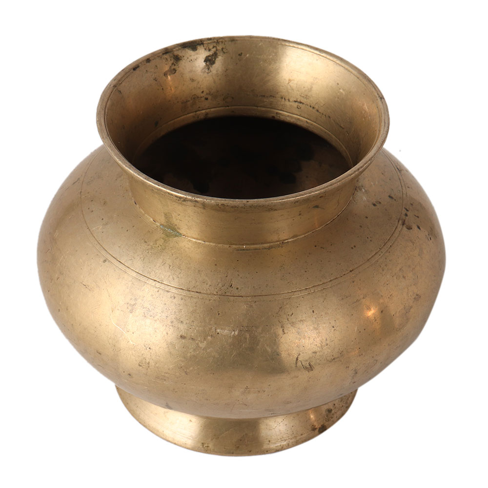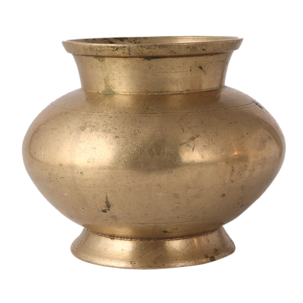 A shiny looking Gangajal water pot for Hindu rituals. It has a smooth surface. The Gangajal water pot is used to store sacred water from the river Ganga. A perfect showpiece to attract visitors.