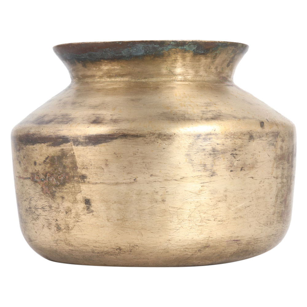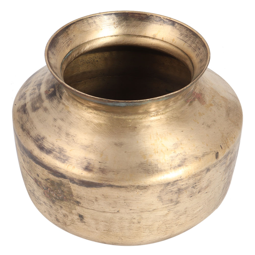 A brass carved Kalash or water pot in a vintage style look. Comes with a flat bottom to hold on the surface with rounded corners to avoid sharp edges. Used in North Indian states to keep sacred water in the home as it is believed to spread positive energy and absorb negativity from the environment when placed in the north or east of the room. Enhance your interior decor with this attractive piece of craftsmanship. Your vintage collection is incomplete without this Kalash.
