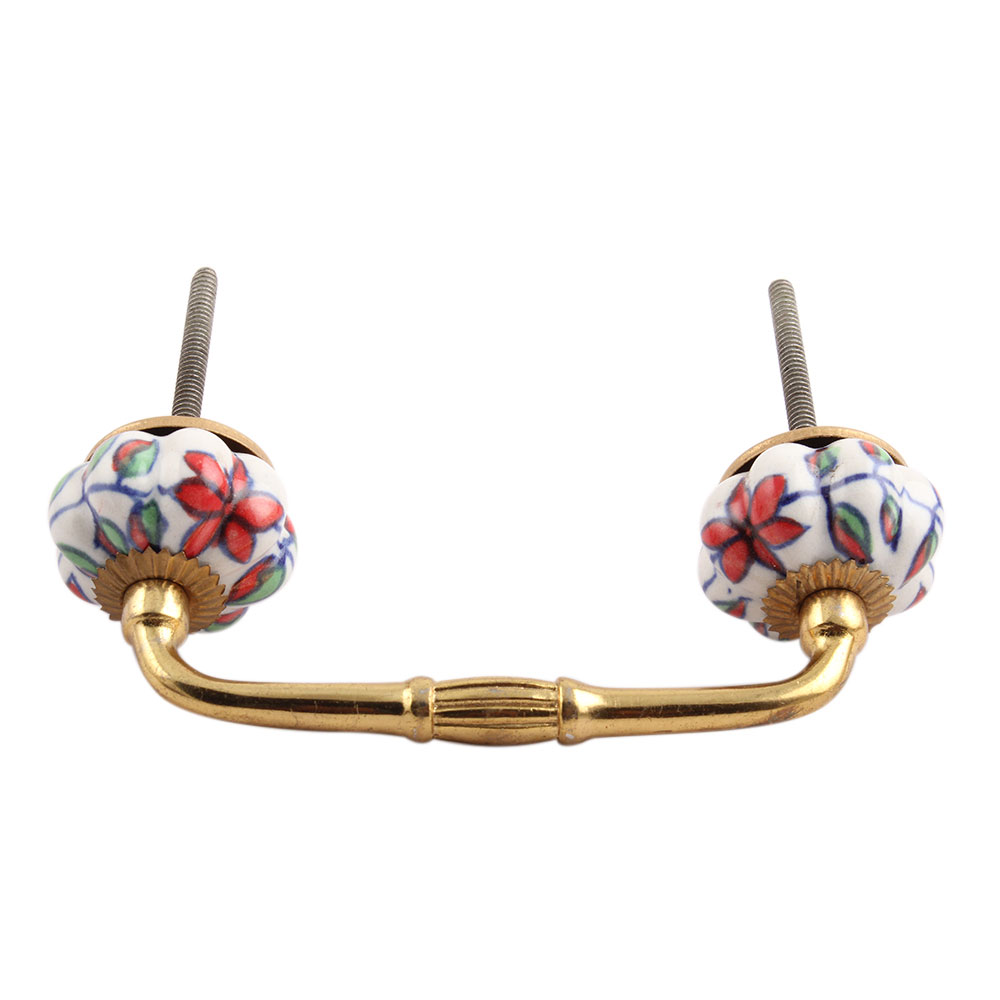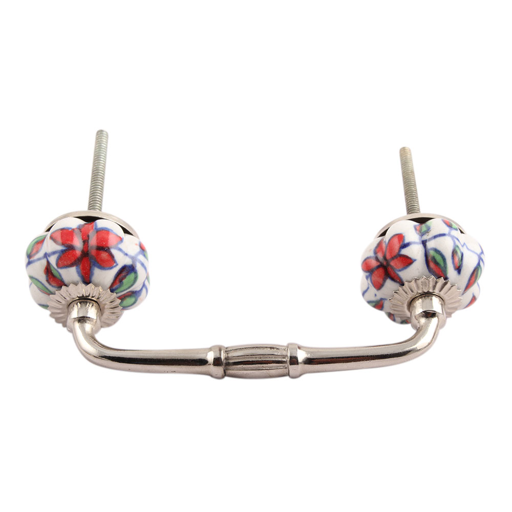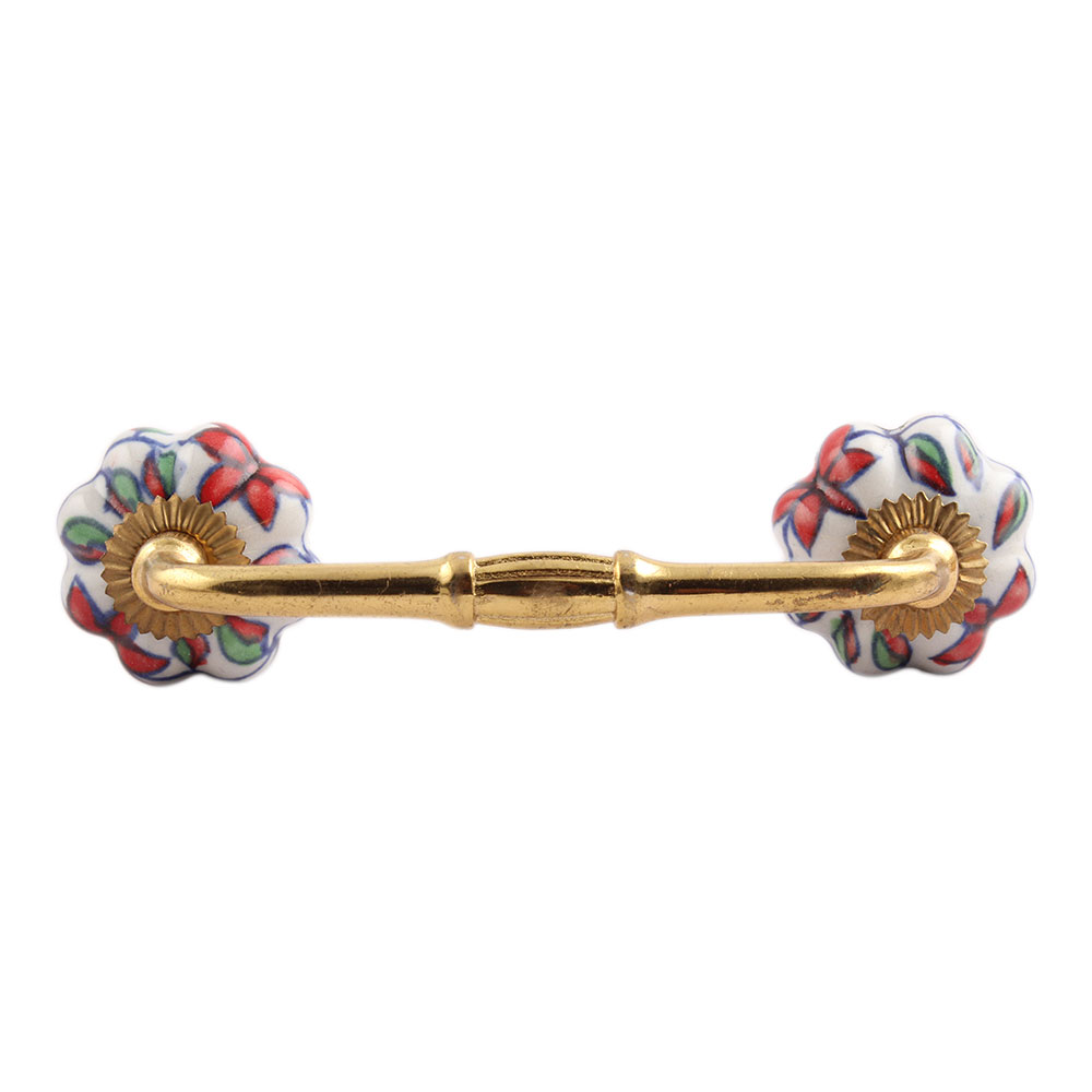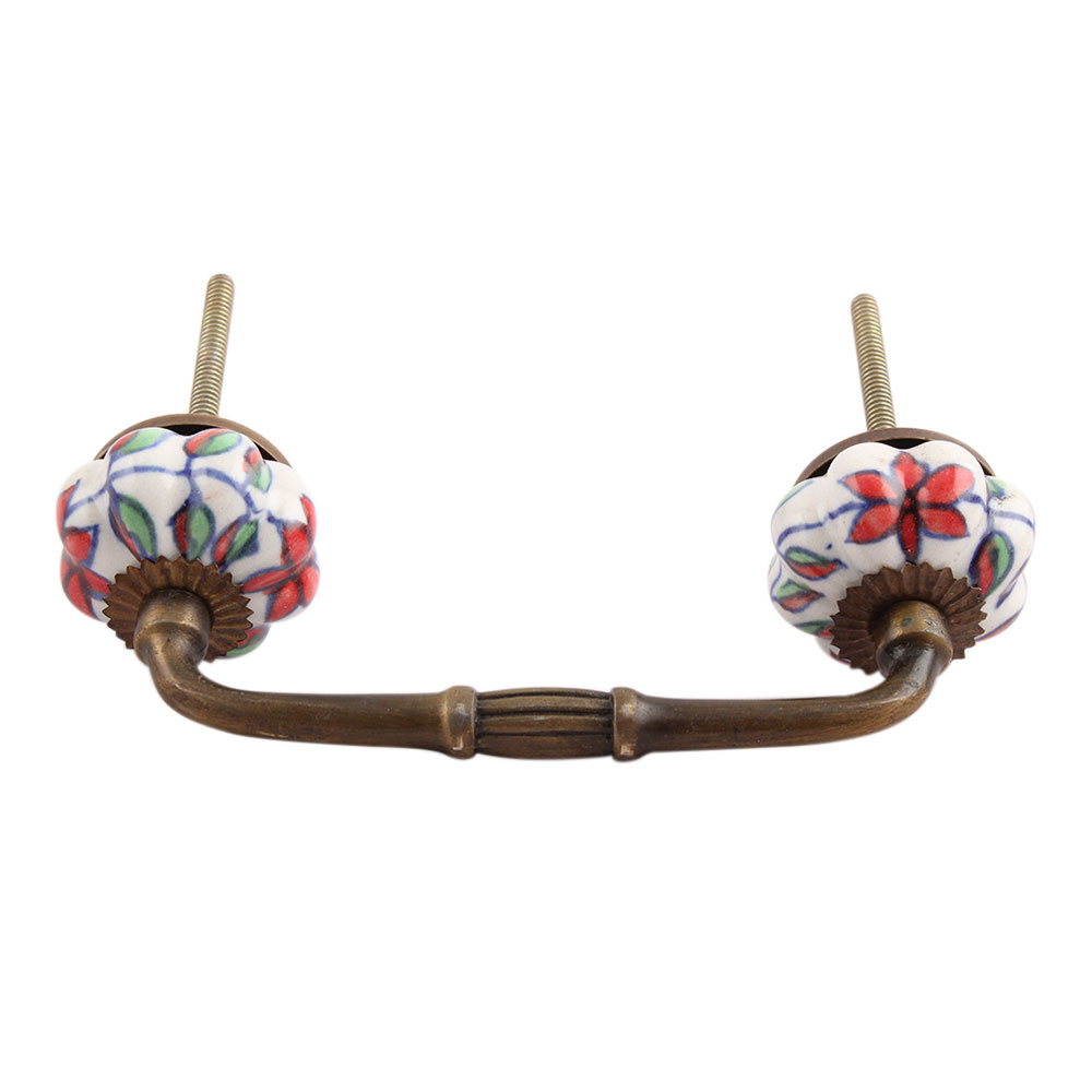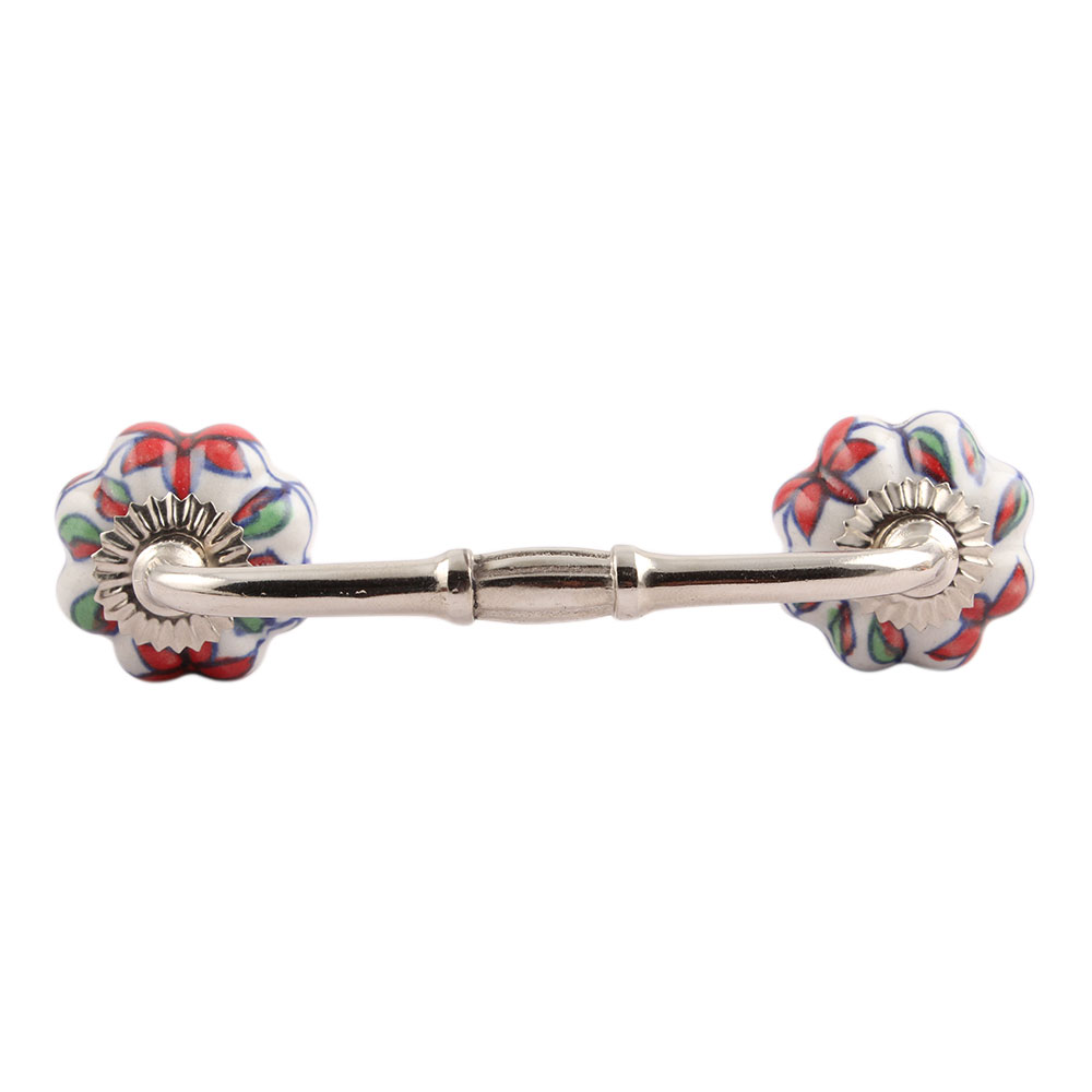 Plumeria Medium Ceramic Bridge Handle. Ideal for Drawer, Dresser, Cabinet, Wardrobe, Cupboard and Almirah.