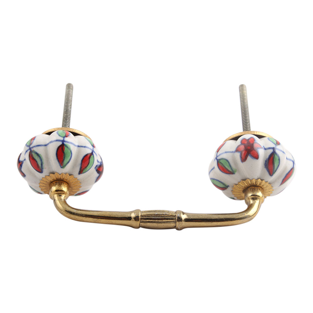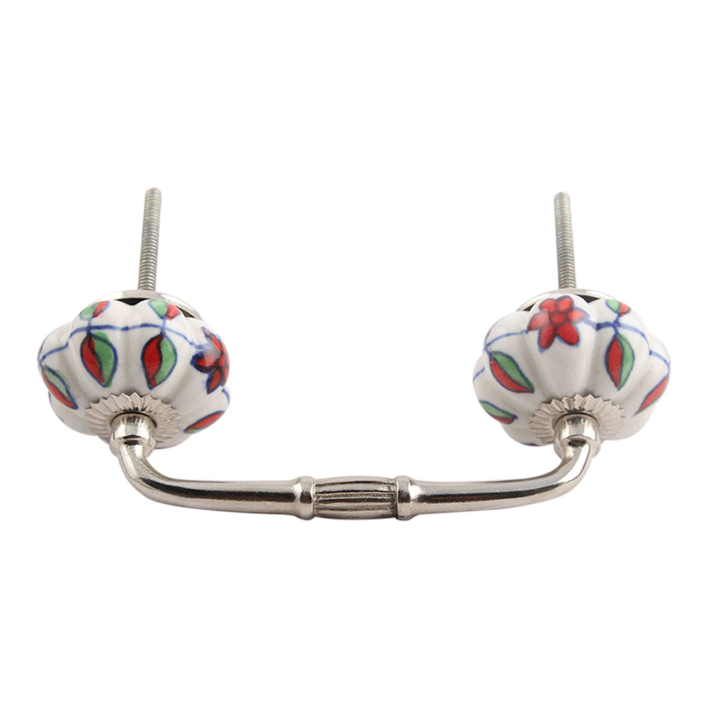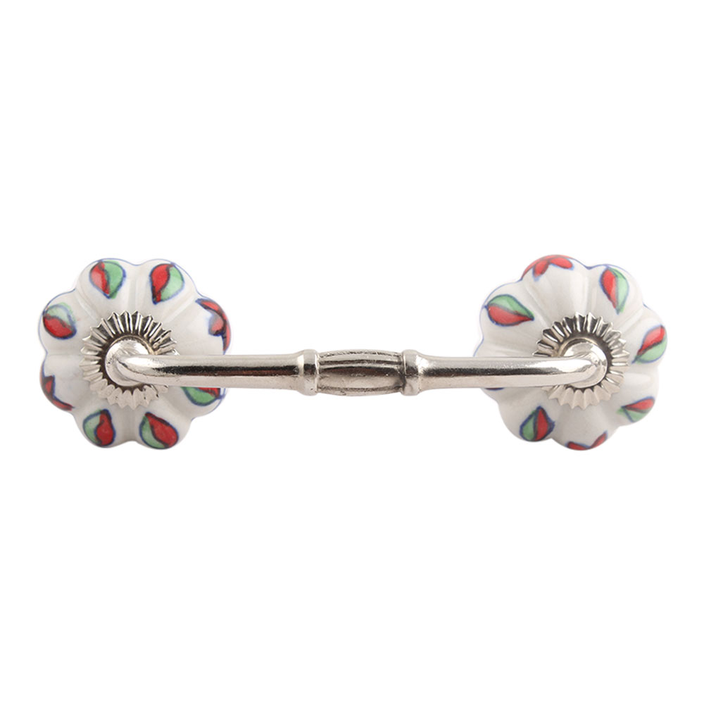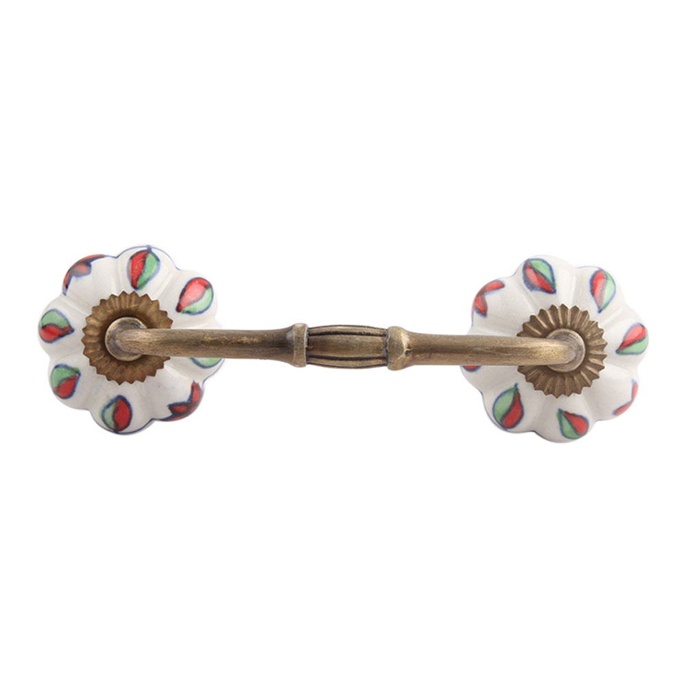 Plumeria Mystical Flower Ceramic Bridge Handle. Ideal for Drawer, Dresser, Cabinet, Wardrobe, Cupboard and Almirah.