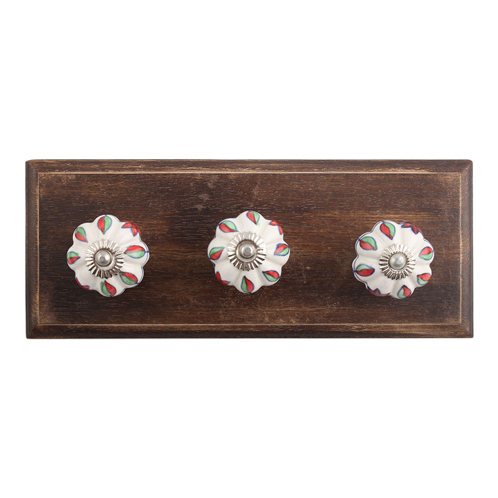 Plumeria Mystical Flower Ceramic Wooden Hook. A Perfect Complement to the Soft Tone of the Wood are these White Traditional Hat &Amp; Coat Hook Made of Genuine Porcelain and Brass. It can be use to Hang Jewellery, Leashes, Towels, Scarves, Light Weight Sweaters, Caps Etc.