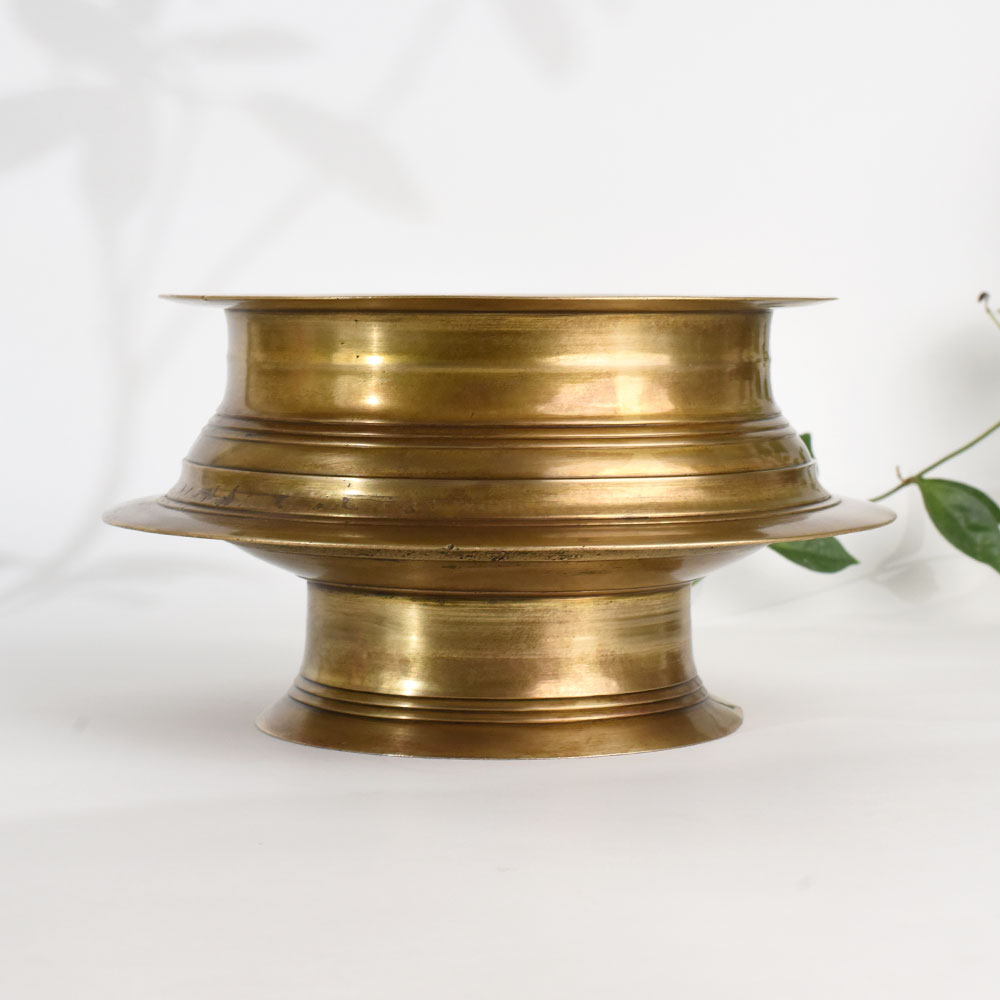 This vintage deep brass pot lends an authentic touch to any setting. Designed with a wide mouth and substantial depth, it offers ample space for floral arrangements, water storage, or even use as an urn during ceremonial occasions. The aged finish and traditional shaping pay homage to ancestral vessels, while the solid brass construction ensures it will endure for years. Display it as a standalone decorative item in your living room, or fill it with plants to create a striking botanical centerpiece. Each piece is handmade, carrying slight variations that enhance its rustic appeal and underscore its artisanal origins. It is a meaningful accessory for anyone who appreciates heritage and craftsmanship.